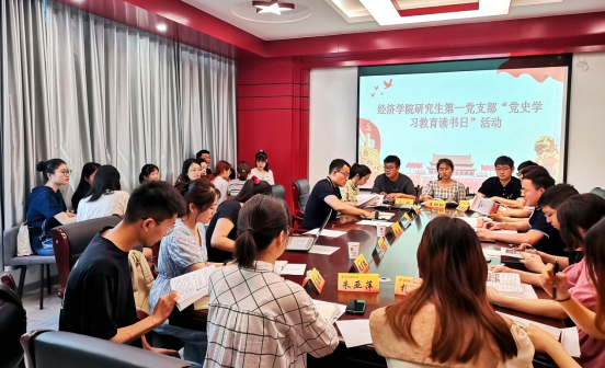 领学完成后,赵子薇同志声情并茂地诵读了党史部分章节内容,用铿锵有力、情绪饱满的语调深刻地描述了党的十二大、十三大召开的历史地位和深远影响。接着,三个年级的11名研究生党员在前期自学和集中学习的基础上,紧扣此次党史学习内容,结合自身研究方向,多视角、多层次、全方位地畅谈党史阅读的收获和党史学习的心得体会,切实增强了坚定不移听党话、跟党走的政治自觉、思想自觉和行动自觉。其他党员同志提交了纸质版党史学习心得。
