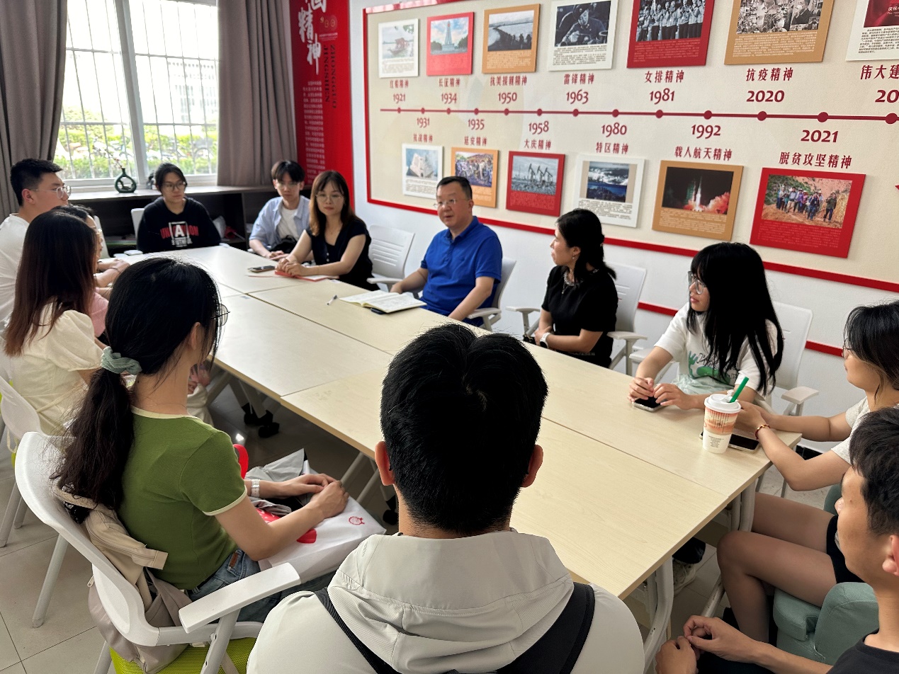 走访结束后,孙彬书记在学生宿舍11号站活动中心召开学生代表座谈会。孙彬书记与党员们分享了《中国共产党的一百年》和《习近平关于严明党的纪律和规矩论述摘编》这两本书目的心得体会,引导大家从党的百年奋斗历程中汲取力量,激发党员们为实现中华民族伟大复兴的中国梦而不懈奋斗的决心。在座谈会上学生党员们表示受益匪浅,同时也积极表达了个人的读书心得,同学们从切身体会出发结合孙彬书记所分享的内容畅所欲言,孙彬书记认真倾听了学生的发言,针对同学们提出的问题,进行了详细的解答,并给予了精心的指导。