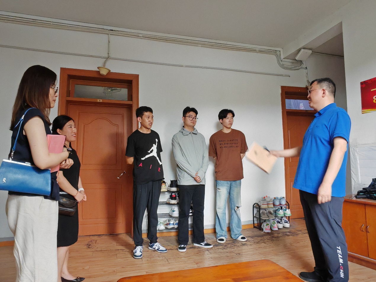 研究生第二党支部书记汤美微及学生代表参与其中。孙彬书记亲临部分学生宿舍,仔细检查了设施配备及安全管理情况,并与学生进行深入交流,详细了解他们的日常生活和学习状态。