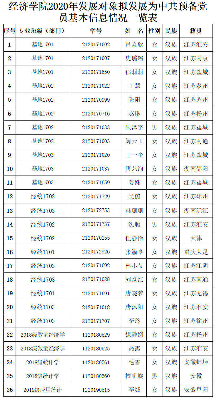 党委预审,拟接收吕嘉欣等32名同志为中共预备党员。现将名单予以公示: