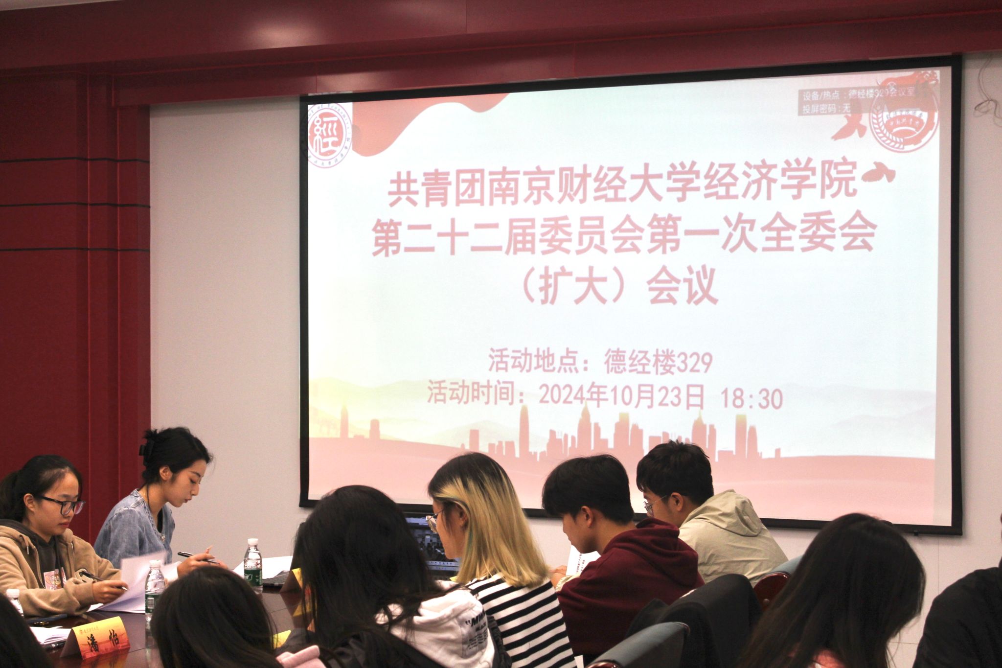 第二十二届委员会第一次全委(扩大)会议在德经楼329召开。院团委书记潘怡、院团委全体、2021级至2024级团支部书记参加会议。