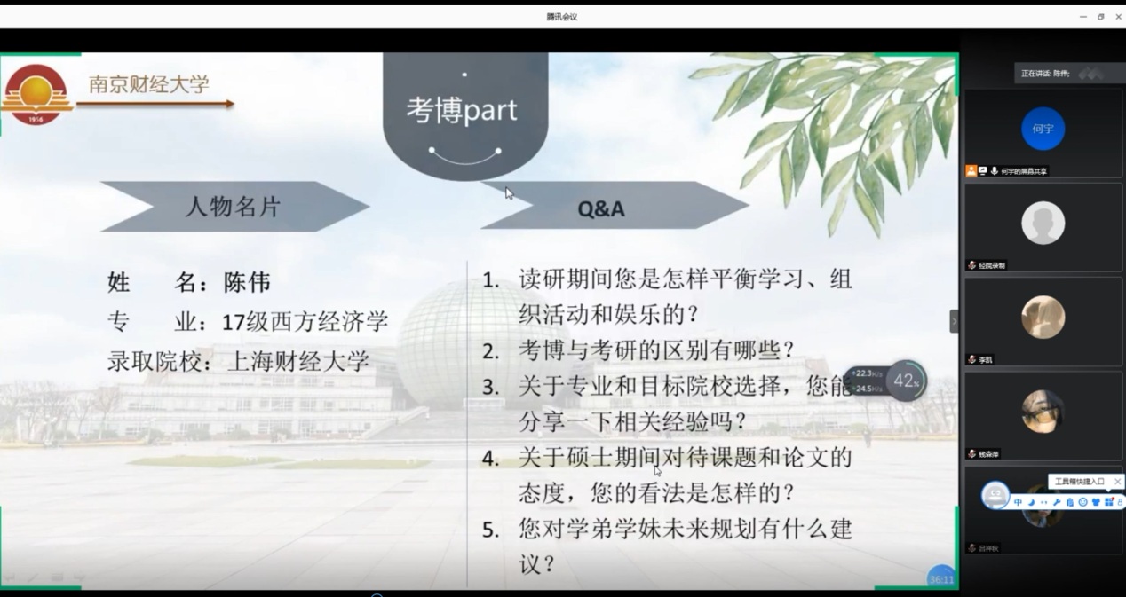 举行线上考博经验分享会。五位硕士毕业于我校的经济类博士及西瓜直播足球