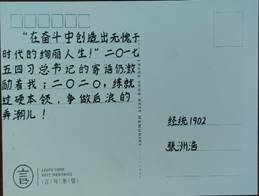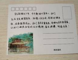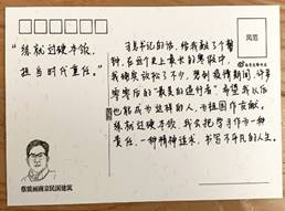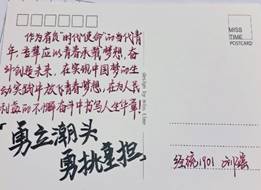 活动中,同学们纷纷将学习习近平总书记“寄语”的心得体会书写在明信片上,以激励自己努力学习,砥砺奋斗。并表示在以后的学习生活中,会以实际行动践行“寄语精神”,锤炼过硬本领,自觉服务祖国,无私奉献社会,不辜负党的期望、人民期待、民族重托,以中华民族伟大复兴的中国梦为目标,用奋斗点燃自己的青春。