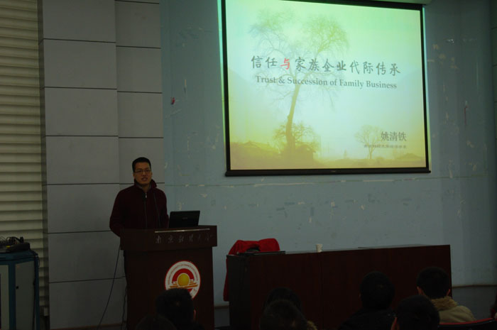 姚清铁老师。姚老师以他独具魅力的讲授方式,将信任在家族企业代际传承中的重要性讲述的深刻、清晰,带领全场听众领略了跨国界、跨时代的家族企业风采,探讨了古老家族企业的长寿之道。