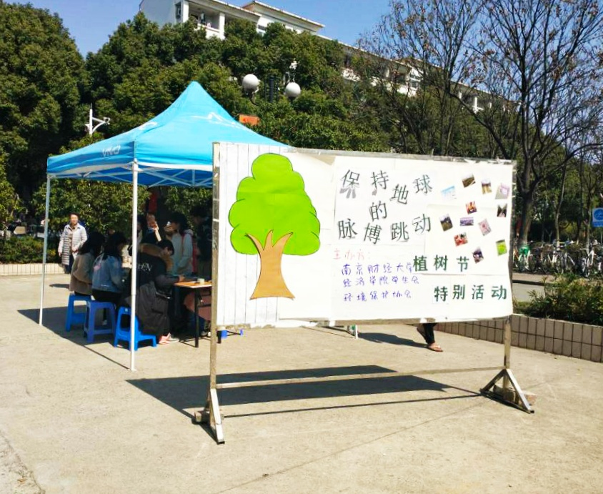 联合环境保护协会于3月12日在中苑食堂联合开展“保持地球的脉搏跳动”植树节活动,活动吸引了全校师生共同参与。