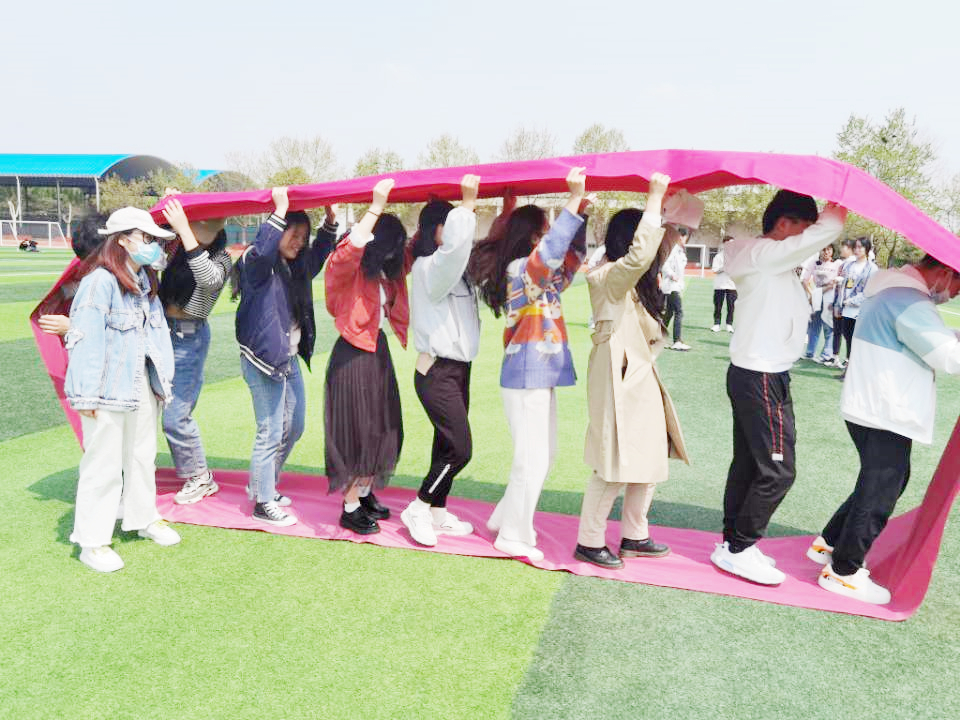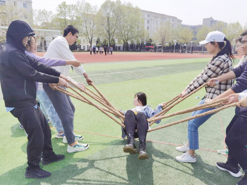 学生干部们秉持着团结合作、创新发展的精神,完成本次团建活动的每一项游戏环节。团结一致是学生会工作中极为重要的一点,“同心击鼓”、“花样传球”项目有助于志愿者们相互磨合,齐心协力地完成游戏任务。创新思维是学生会良好发展的内需动力, “无敌风火轮”和“雷区取水”项目考验了成员们探讨协商游戏策略,开发创新思维的能力。而“穿越障碍”和“公主保卫战”项目则有助于志愿者们培养细致观察的好习惯。