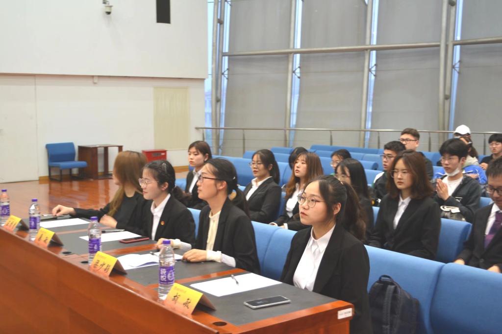 第一组,由办公室部长蒋雪飞同学和潘宇同学进行述职。办公室在团组织中负责活动材料与活动资料的收集和整理,两位部长以清晰的时间线回顾了部门内各项特色工作。其中,青马班系列活动旨在落实青马工程,增进学生对于青马班重要责任的理解,意义非凡。就内部建设而言,该部门对各位部员进行了专业的培训,按时开展例会、定期约谈,引导的同时积极鼓励部员自主策划活动,培养工作经验。