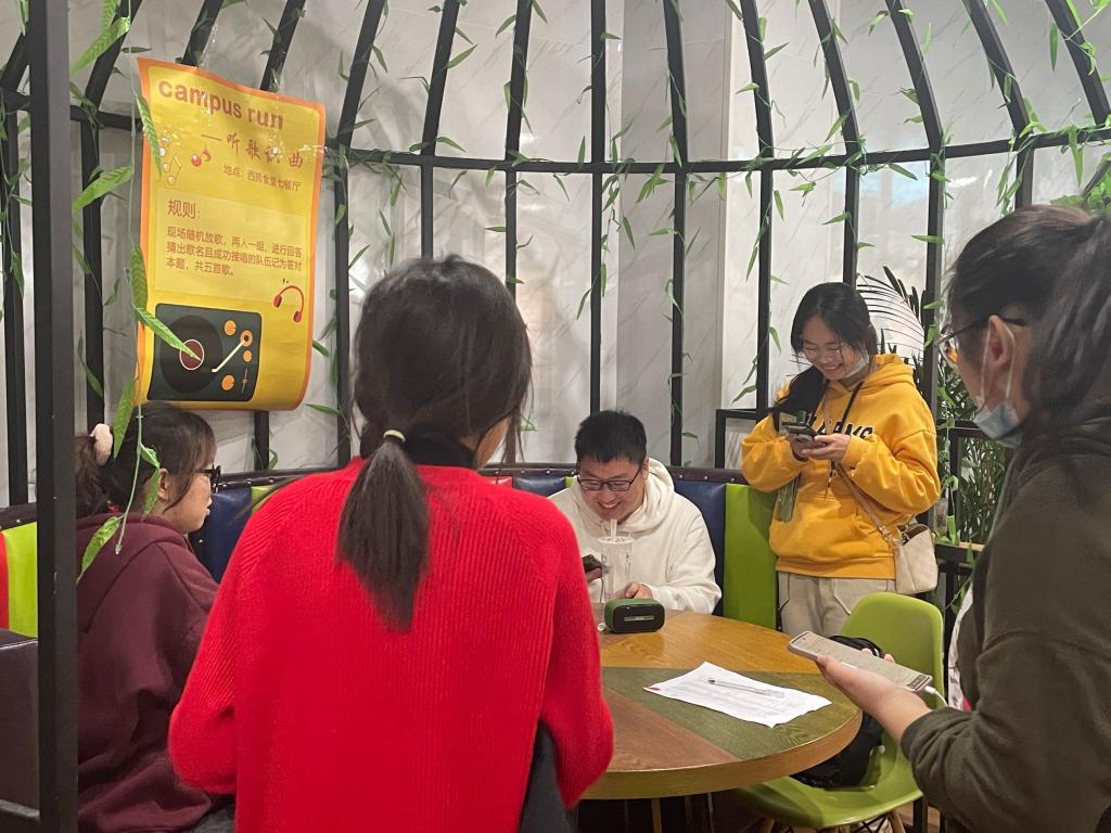 志愿者们拼尽全力、配合默契地完成了一道道关卡。位于西苑食堂和博远楼的“听歌识曲“和“中华小曲库”不仅考验了同学们的文化知识,也考验了选手们的反应能力。而位于德经楼和德济楼连廊的“叶子奇遇”,则需要同学们通过敏锐的观察,找出不同植物的叶子,从而获得印章。