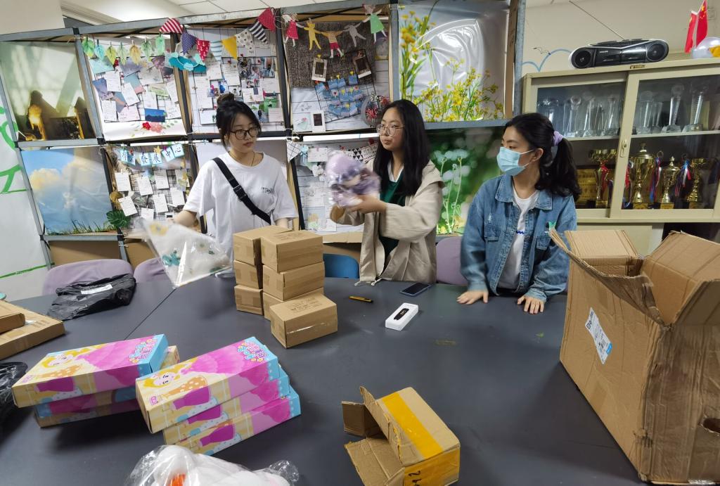 志愿者们在整理“微心愿”礼物