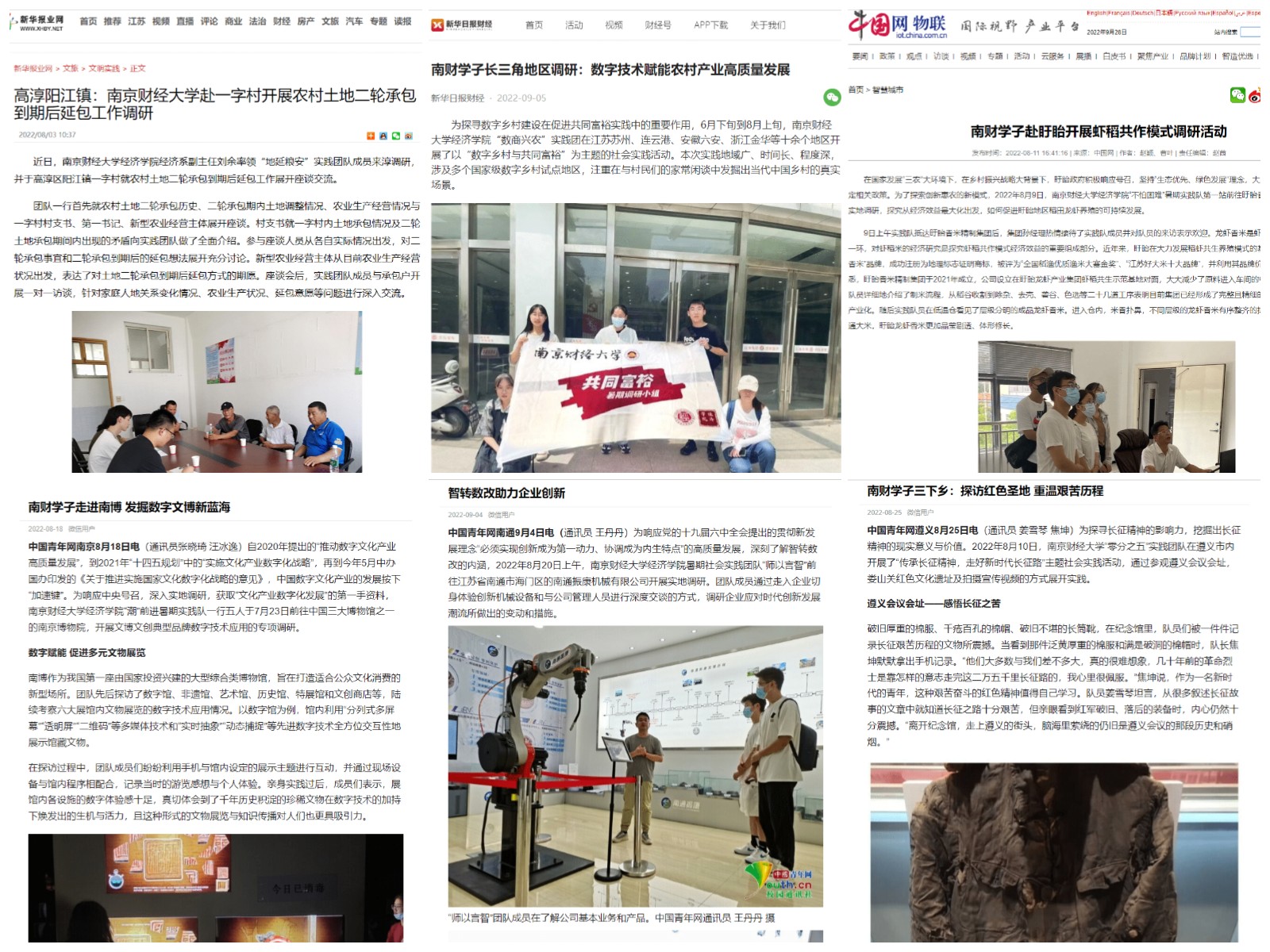 通过组织开展社会实践,集中组建共34支队伍赴省内外开展暑期社会实践,更有30余名教师参与社会实践团队指导工作,覆盖红色文化育人、国情民情调研、服务国家发展、创新创业竞赛提升等多个领域,开展实地调研、学习考察、调查研究,将理论和实践相结合,以实际行动献礼党的二十大。 本期暑期社会实践受到实践单位与乡镇高度评价,活动累计发表310余篇媒体报道,受到光明网、新华日报、新华日报财经、新华报业网、人民视频网、乡村干部报网、学习强国、中国网、中国青年网等多家主流媒体宣传报道,经院青年用自己的实际行动唱响青春力量的时代强音。