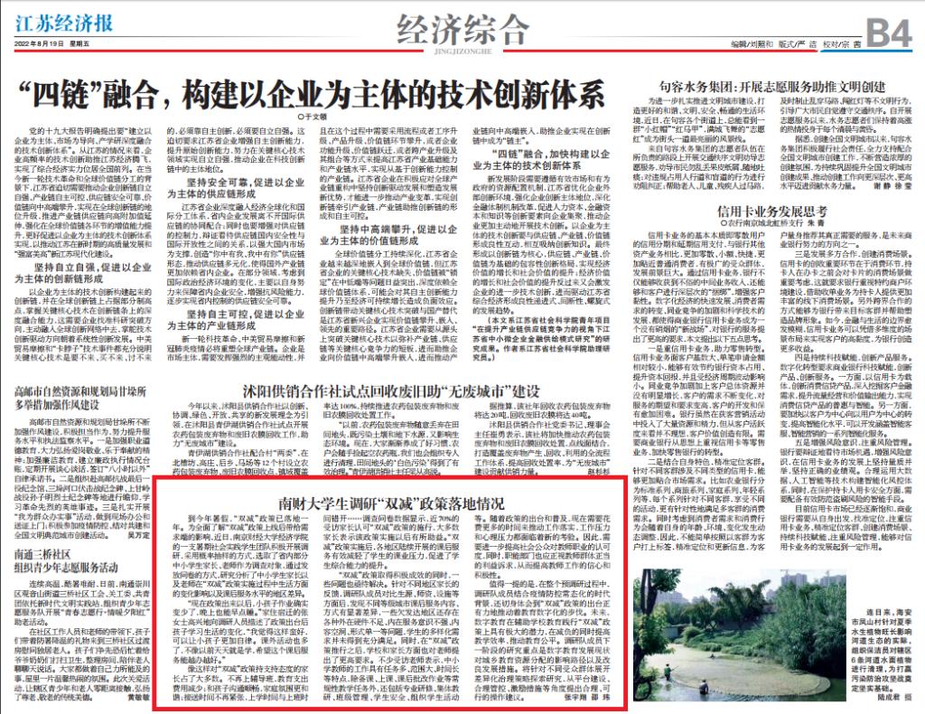 学子调研“双减”落地政策在《江苏经济报》刊登