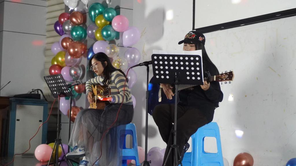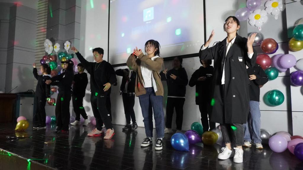 “此曲只应天上有,人间能得几回闻。”在第二篇章中,邓俊杰、李丹丹、陈小曼、金霖、钱骏豪五位同学各挥所长,演唱自己擅长的歌曲,为大家带来了一场听觉盛宴。服务维权中心的合唱也同样令人记忆犹新。在第三篇章中,由张南阳、毛颖杰、张坤、邓旺祥四位同学带来的吉他弹唱《海阔天空》可谓是“余音绕梁三日犹未尽”,赢得了众多同学的喜爱。梁欣怡同学登上舞台,表演独舞《pink venom》,张佳丽、邵雨轩、张与溦同学的《遇见》紧随其后。综合事务中心的《配音乱炖》引来同学们阵阵笑声,对外交流中心的唱跳rap更是让人耳目一新。而间或穿插在整场晚会的三轮抽奖环节与游戏互动环节,更是拉近了观众与晚会的距离,让人沉醉其中、尽享欢乐。