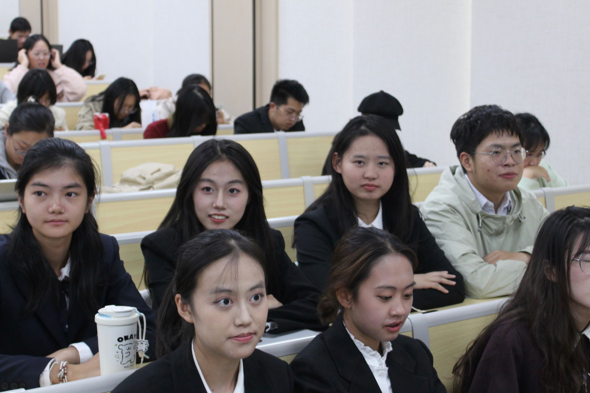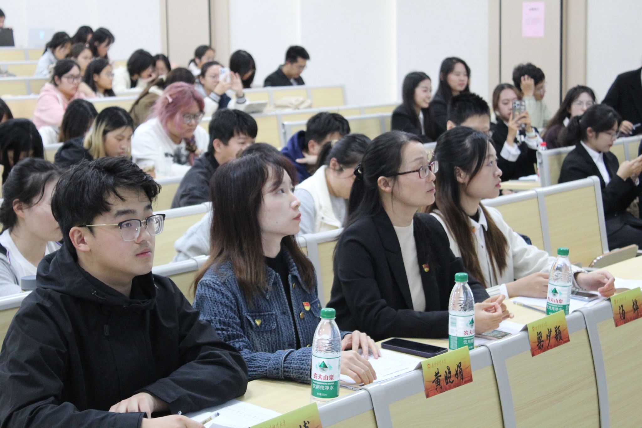 学工办主任、本科生辅导员梁少颖老师,党委组织员、本科生辅导员黄晓娟老师,中共预备党员汤烨、朱俊博同学担任评委,全体青马班成员以及部分2024级本科新生参加本次活动。来自全院的12名选手逐一登台亮相。