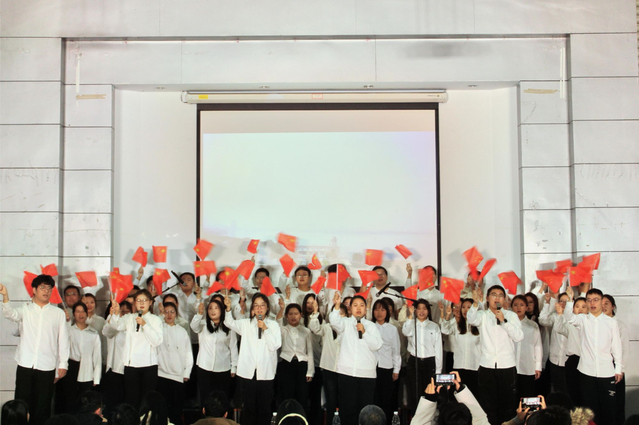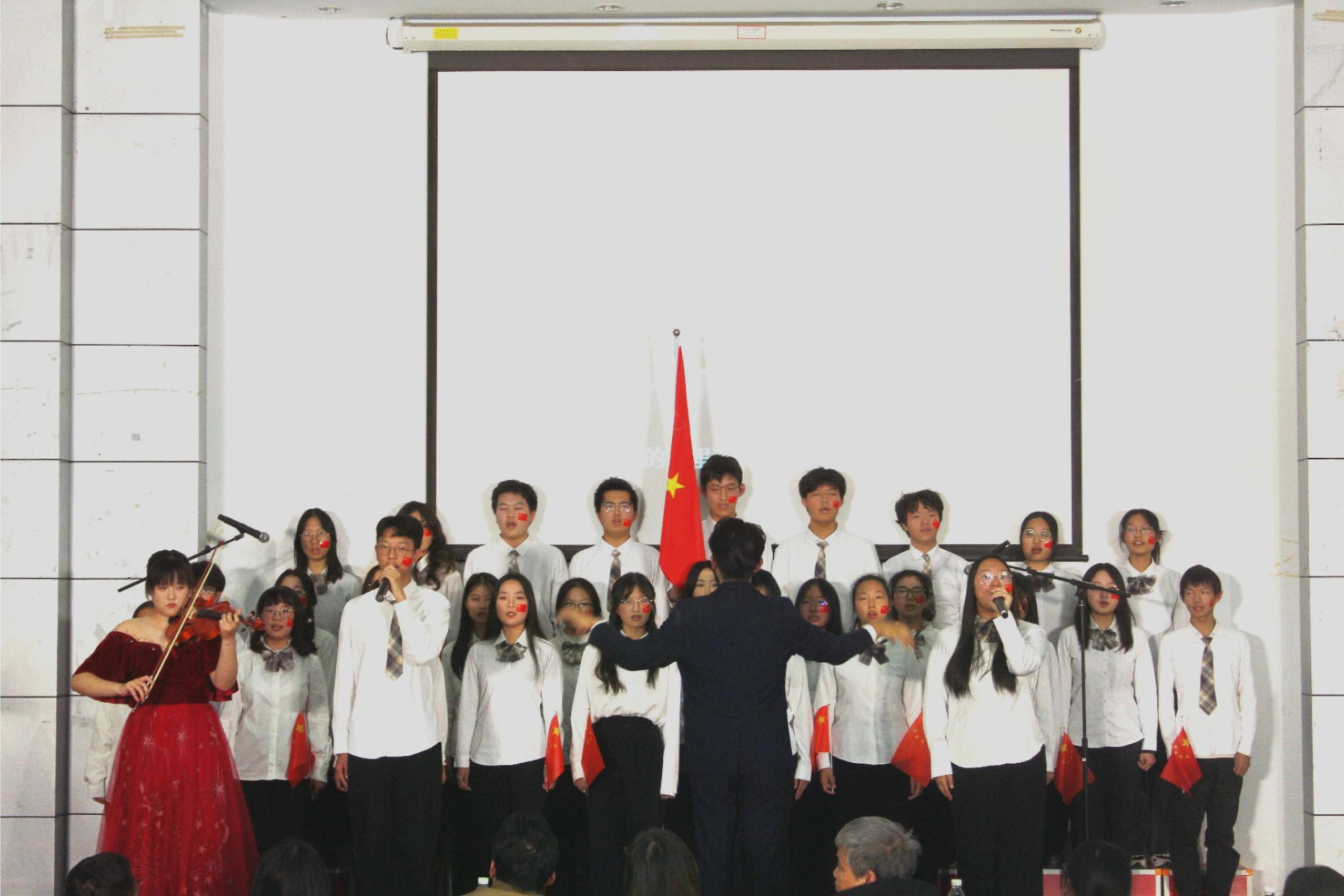 2401班带来歌曲《紫荆花盛开》,表达对爱的向往和希望,如日之升,如月之恒,泱泱大国,山河永在,港澳回归,台湾当归,中国一点儿也不能少。