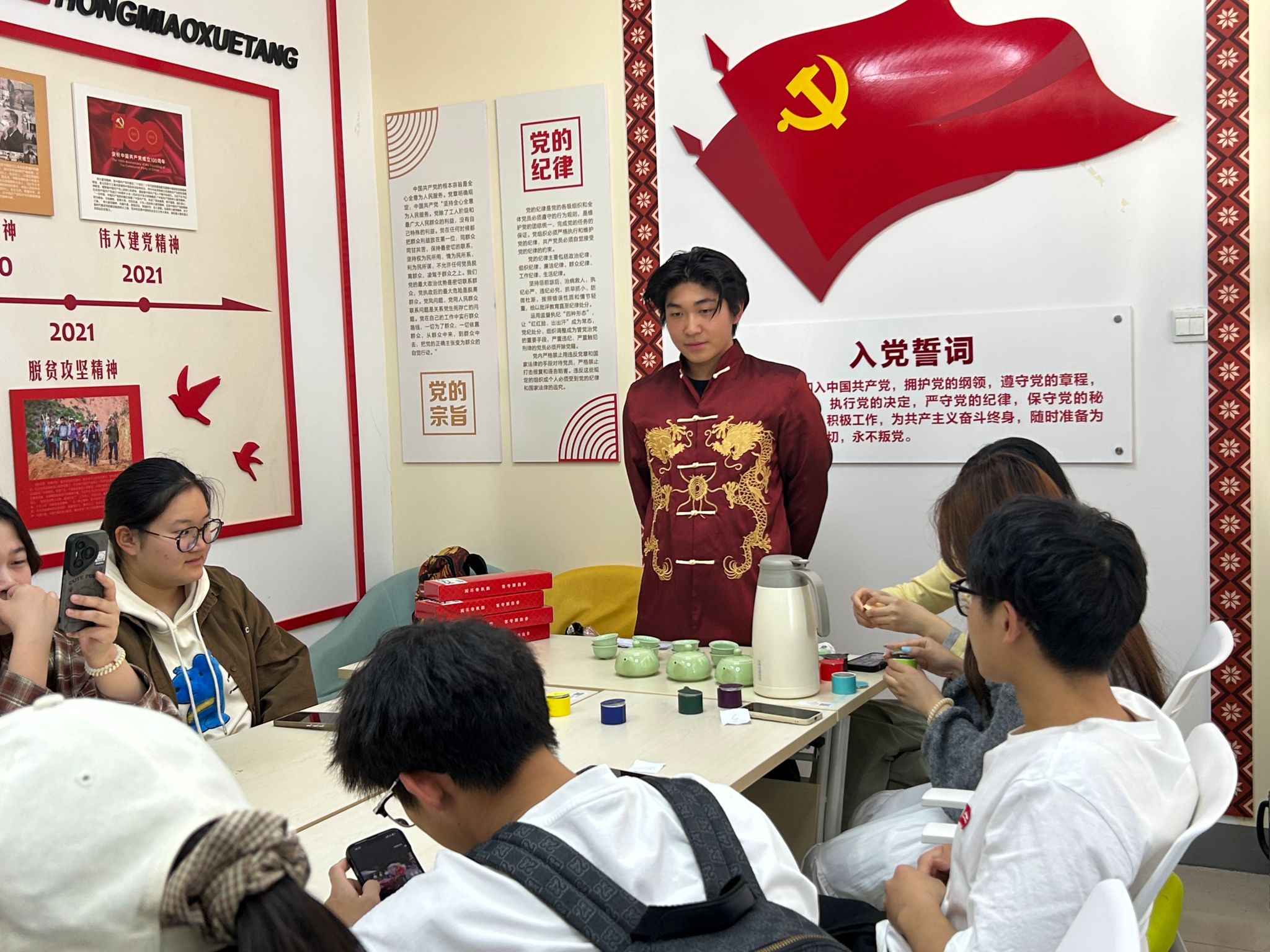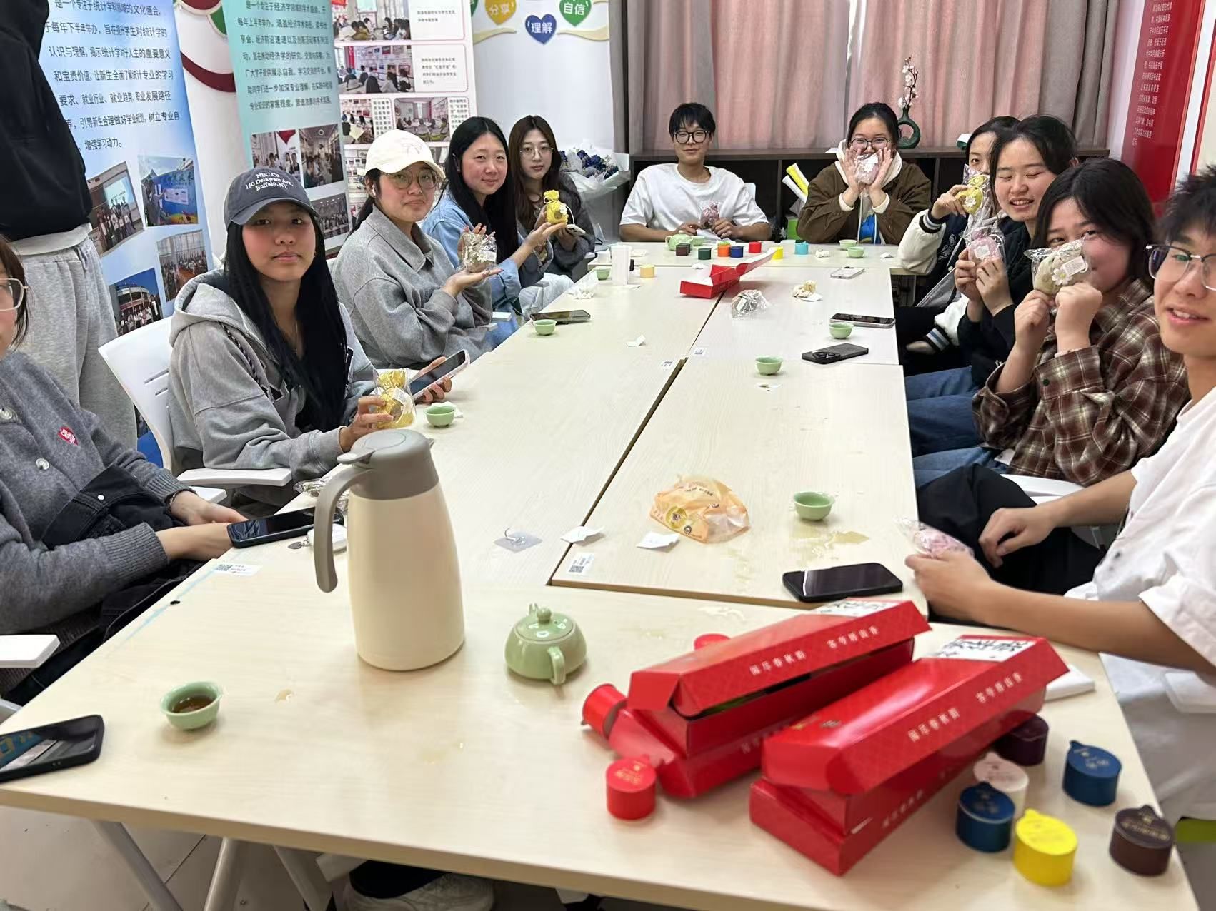活动开始前,学生会成员们早早来到活动现场进行布置,摆放好精致的茶具和品类丰富的茶叶。随着参与同学陆续到来,活动在轻松愉快的氛围中拉开帷幕。主持人深入浅出地讲述了茶文化与中华优秀传统文化的深厚渊源,为此次活动奠定了浓郁的文化基调。随后,同学们亲操茶器,在注水、冲泡、出汤之间,探寻茶叶的种类、产地与制作工艺的奥秘,于实践中加深对茶文化的理解。大家轻嗅茶香、细品茶汤,交流着各自对茶的感悟,让思想在茶香中碰撞。