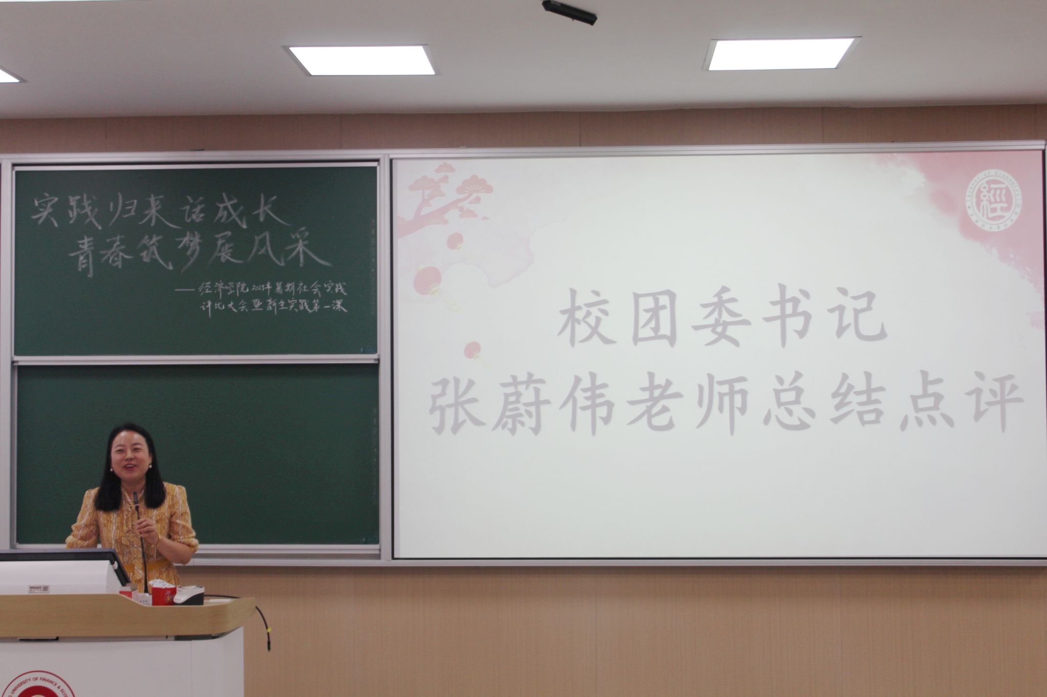 党委副书记贾亦璞老师致开幕辞,并对参与暑期社会实践的同学们给予高度肯定。贾老师指出,社会实践是培养学生综合素质的重要途径,是课堂教学的重要延伸。她特别强调,同学们在实践中展现出的探索精神和务实态度,充分体现了经院学子应有的责任担当。同时,她鼓励新生要以此次大会为起点,积极规划个人实践路径,将经济学理论与现实问题相结合,在社会大课堂中锤炼过硬本领。