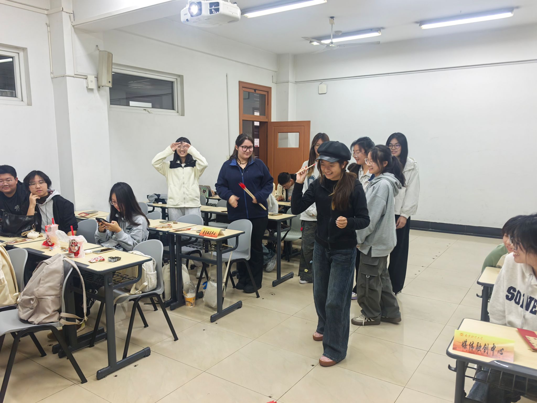 随后的“投壶祈福”活动更是将现场气氛推向高潮。当箭矢不偏不倚投入壶中时,人群中立刻传来鼓掌声与欢呼声,现场同学热情高涨。这个特别的小游戏不仅让大家体验了古代礼仪之趣,同学们也在欢声笑语中寄托自己对未来的美好祝愿。
