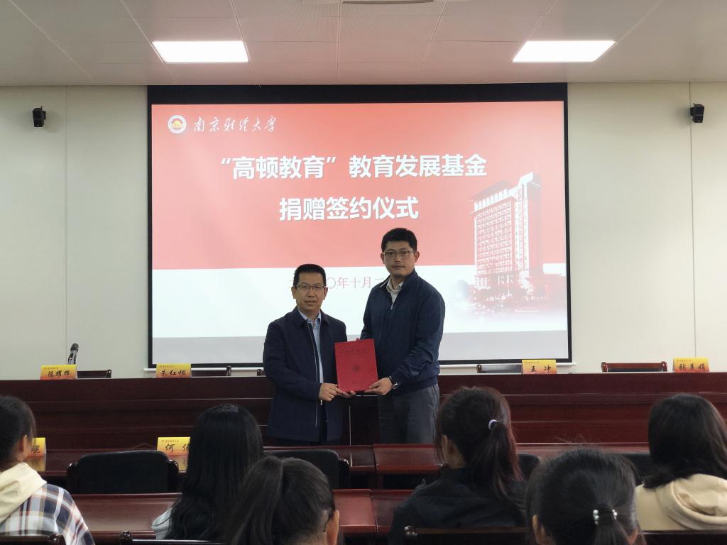 10月27日下午,“高顿教育”教育发展基金捐赠签约仪式在仙林校区德经楼307会议室举行。校党委常委、宣传部部长石奇,高顿教育集团联合创始人、副总裁王贤瀚,西瓜直播足球