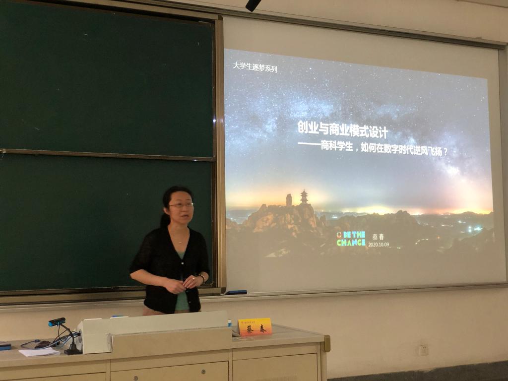 邀请,我校应用统计专业校外硕士研究生导师、广州智联网联盟发起人/副会长,MA Club企投家联盟核心发起人蔡春女士在仙林校区德济楼101教室作了题为“创业与商业模式设计——商科学生,如何在数字时代逆风飞扬?”的讲座。讲座由西瓜直播足球