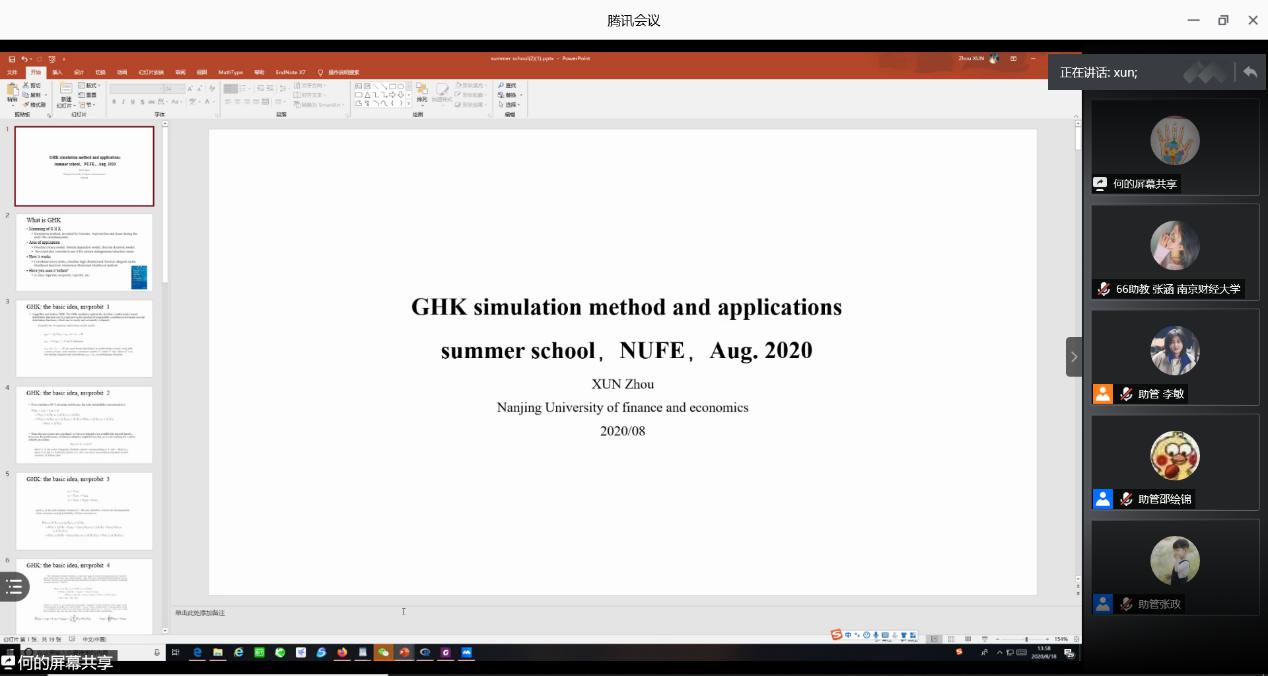 8月18日下午,南京财经大学寻舟副教授为暑期学校的学员们作了题为“GHK模拟方法及其应用”的专题讲座。