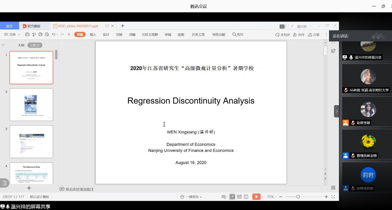 8月16日上午,南京财经大学温兴祥博士为暑期学校的学员们作了题为“断点回归方法(RDD)及Stata实现”的专题讲座。