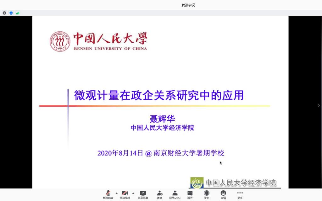 8月14日下午,中国人民大学聂辉华教授为暑期学校的学员们作了题为“微观计量在政企关系研究中的应用”的专题讲座。讲座由西瓜直播apk