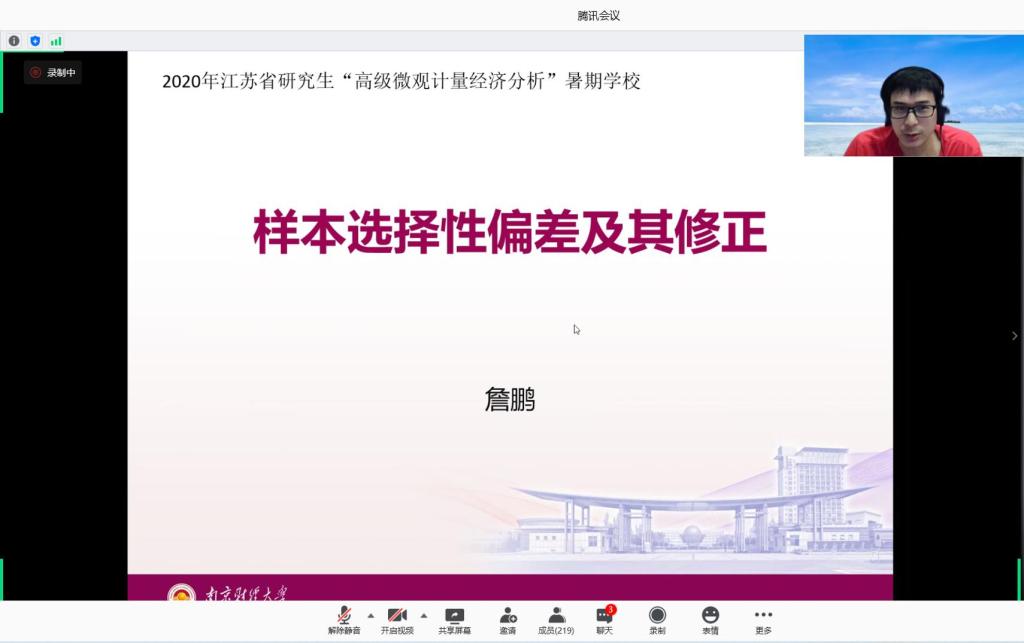 8月13日下午,南京财经大学詹鹏博士为暑期学校的学员们作了题为“样本选择性偏差及其修正”的专题讲座。