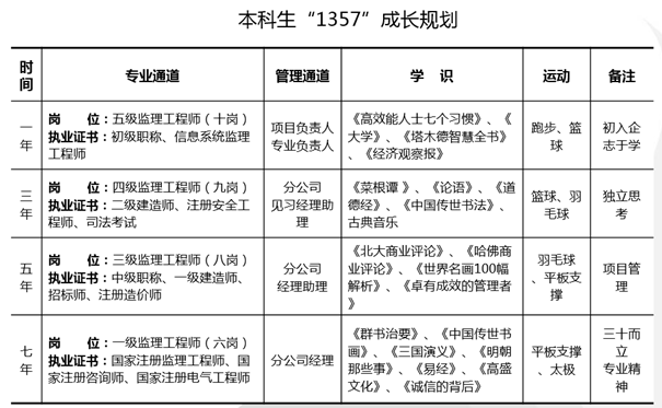 “做最好的我”把本次培训推向了高潮。为什么要学习?该学些什么?该如何去学?三问引出了知识、智慧、独立、习惯、信念和目标六大知识点,让学生们真正意识到人生要有目标,要有自己的职业规划。职业生涯规划有助于帮助学生确定职业发展目标。同时,方老师介绍了目前企业培养新员工较为流行的“1357”逐步登顶式发展规划。“1357”规划吸引了学生们的眼球,并就此展开热烈的讨论。