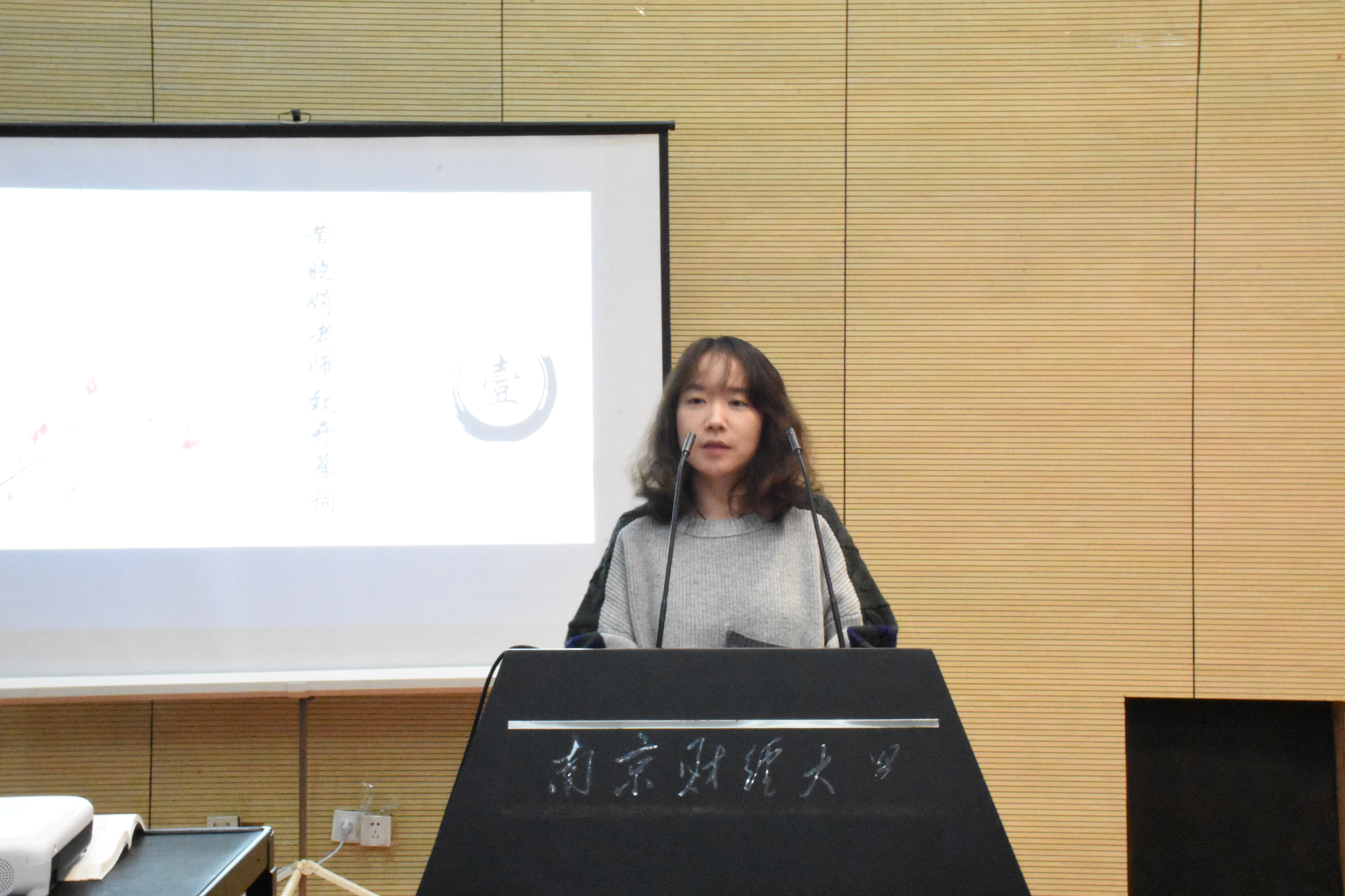 黄晓娟老师首先简要回顾了经济学术节的发展过程,以及举办该活动的目的。她希望同学们能在不遗余力地学习专业知识、专业技能的前提下,更加熟练地把所学知识运用到生活中,使得知识与生活相切合。黄老师接着介绍了本届经济学术节接下来的活动安排,并呼吁同学们踊跃报名、积极参与。
