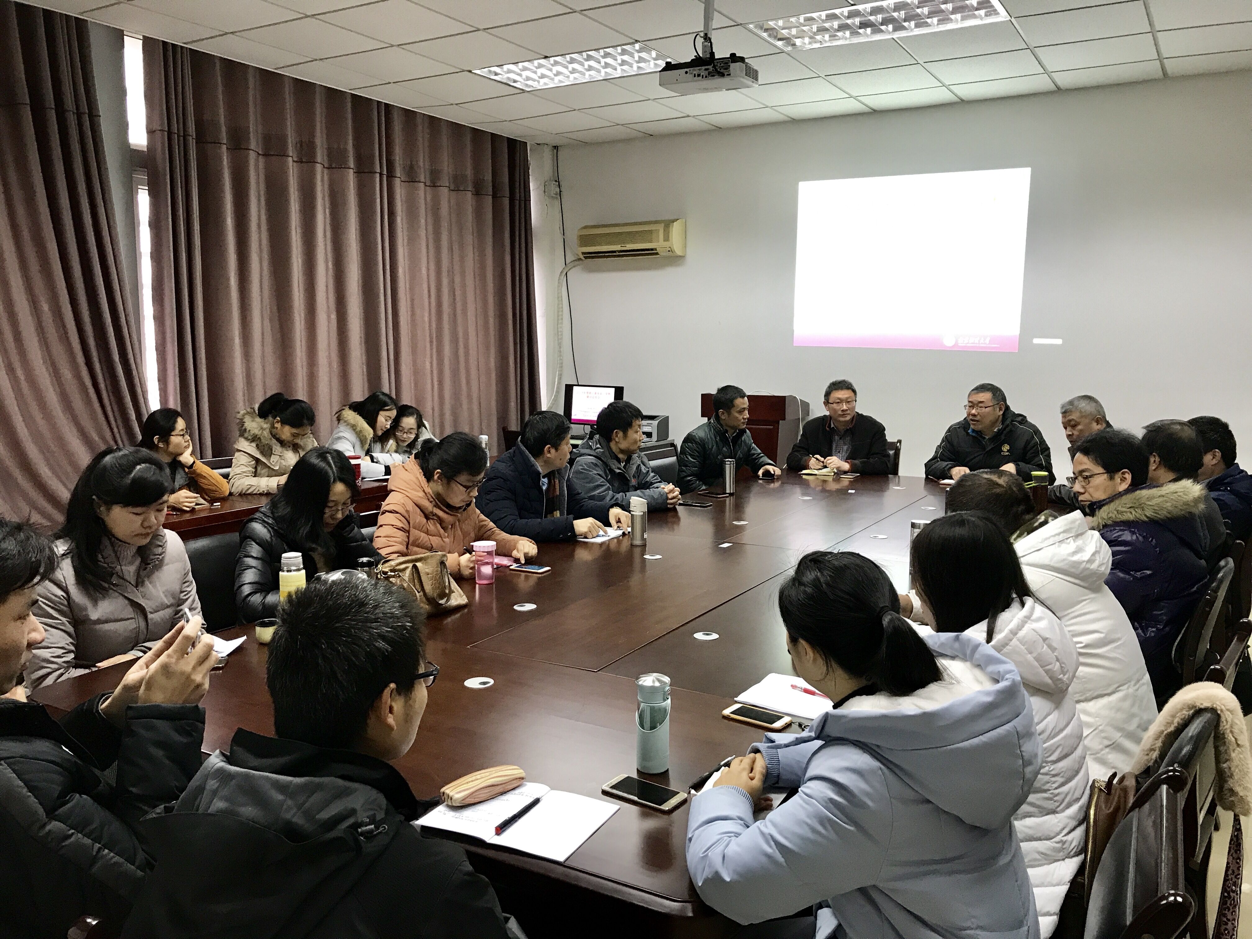 于德经楼323会议室召开了“2018年度统计学专业和学科建设总结会”。 院党委书记陈耀辉教授,副院长(主持工作)朱红根教授,副院长张成教授出席了会议,统计系全体教师参加了会议。会议由陈耀辉教授主持。