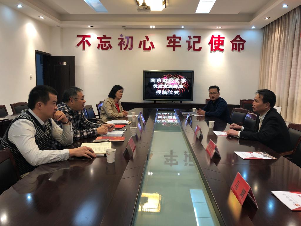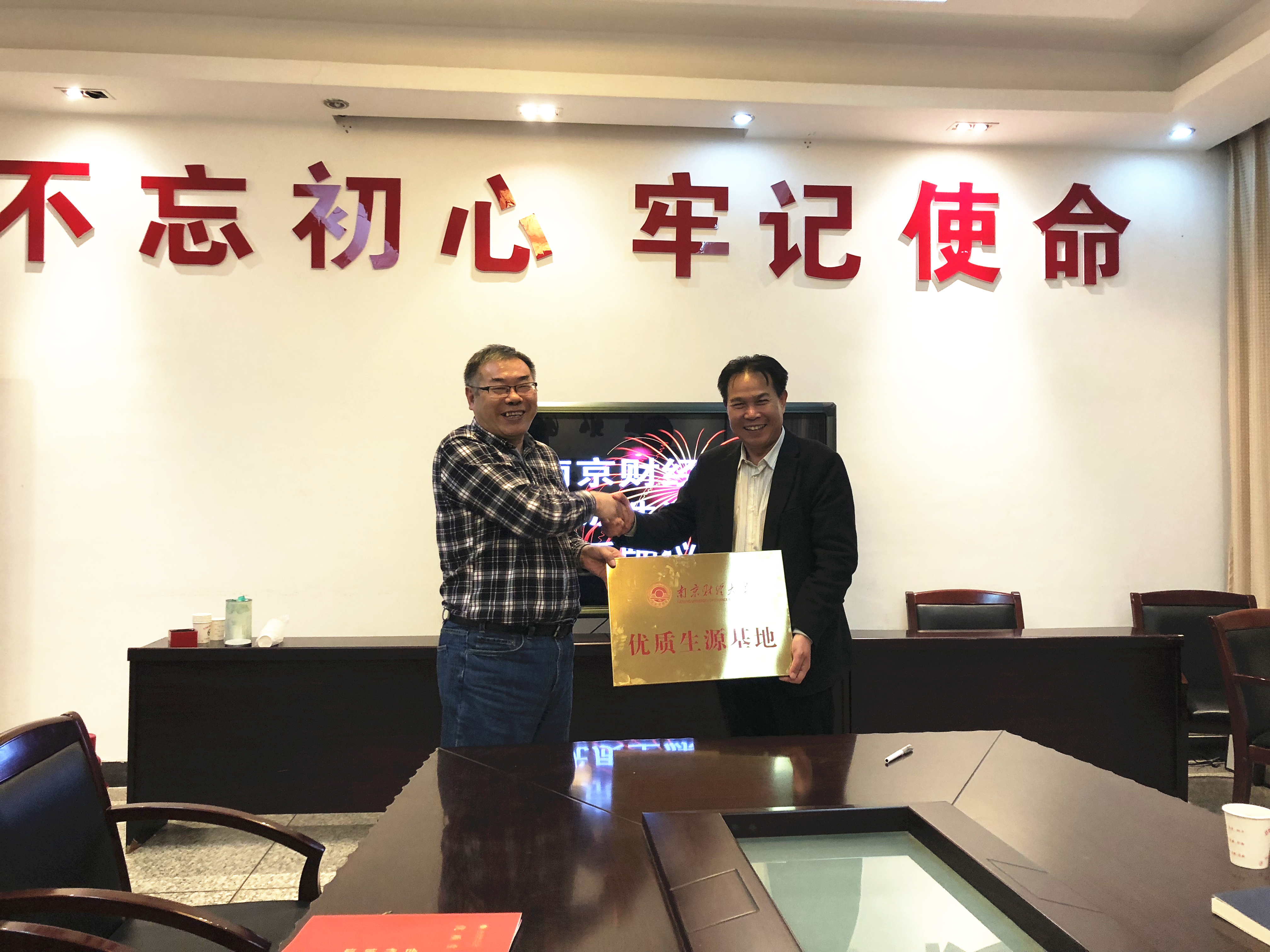 陈耀辉书记与程煜校长签订了《南京财经大学优质生源基地合作协议书》,并授予该校“南京财经大学优质生源基地”铜牌。