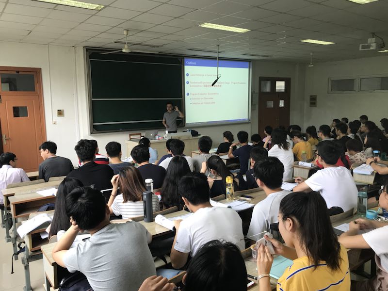 曲兆鹏副教授作了题为“经济学中的分解方法”的专题讲座。 曲老师讲解了经济学中一些重要的因素分解方法,主要包括近年来最为流行的Oaxaca-Blinder分解法、Brown分解法和分布分解法等。当天下午,在博观楼208机房曲教授就这些分解方法对暑期学校学员进行了STATA操作培训。