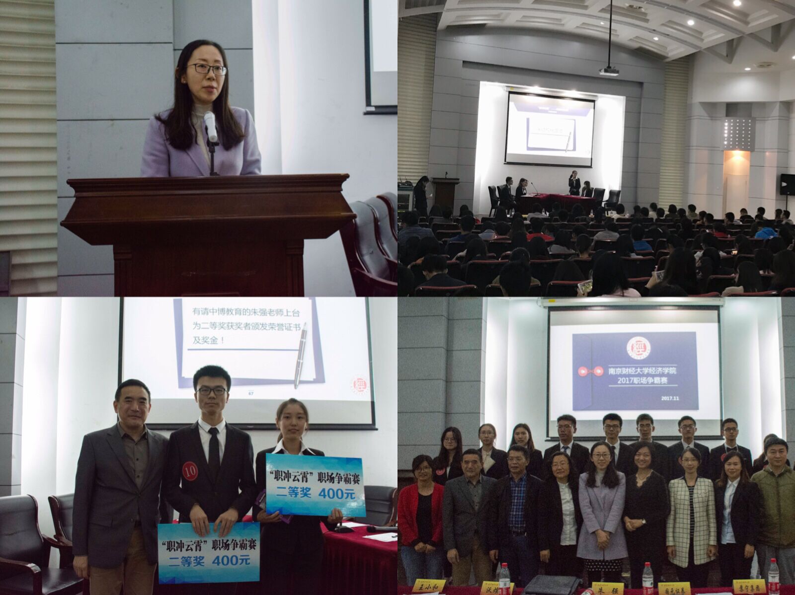 “职冲云霄”职场争霸赛决赛于德经楼报告厅精彩举行。中博教育总经理王小和、国元证券南京地区负责人董媛、天职会计师事务所人力国际培训主管朱文清、中财集团江苏分公司资管部负责人徐彩阳等,西瓜直播apk