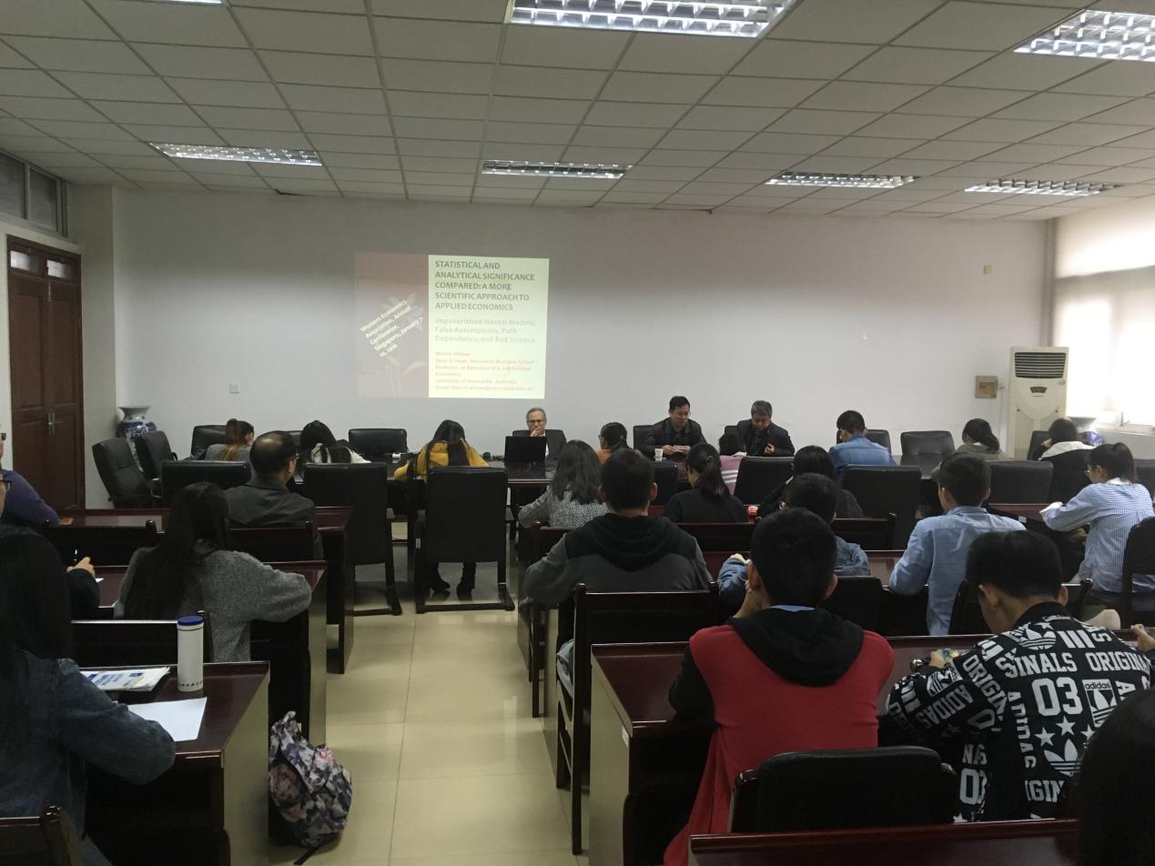 院长莫理斯•阿特曼教授在经济学科楼307室举行了一场题为“Statistical and Analytical Significance Compared: A More Scientific
