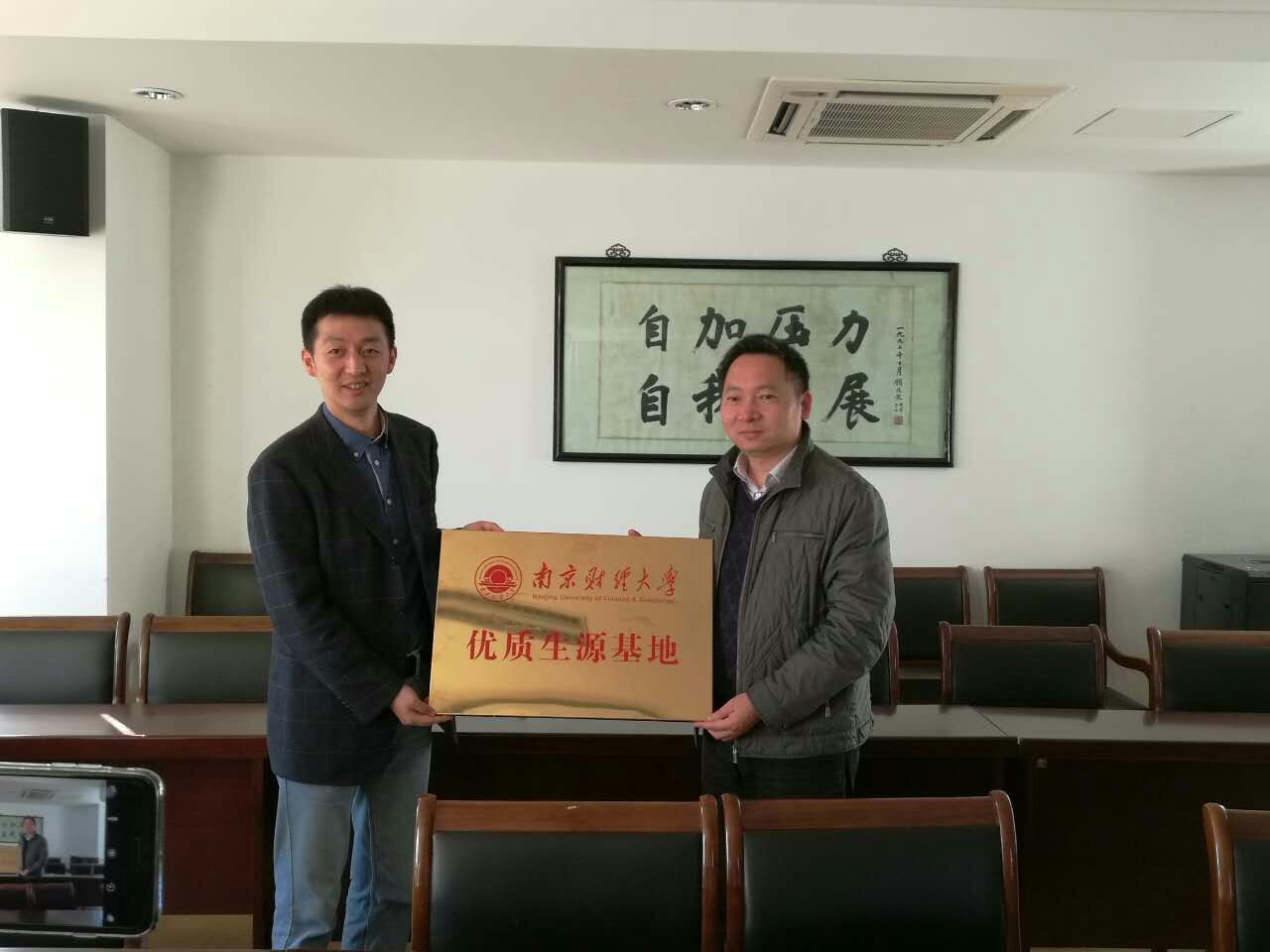 党委副书记郝园园一行赴无锡、苏州,分别与无锡市辅仁高中、苏州市第一中学等两所四星级中学签订“南京财经大学优质生源基地”协议并授牌。无锡市辅仁高中校长张军、德育处主任饶满林,苏州市第一中学副校长曹文杰、教务处主任张颖等参加了仪式。