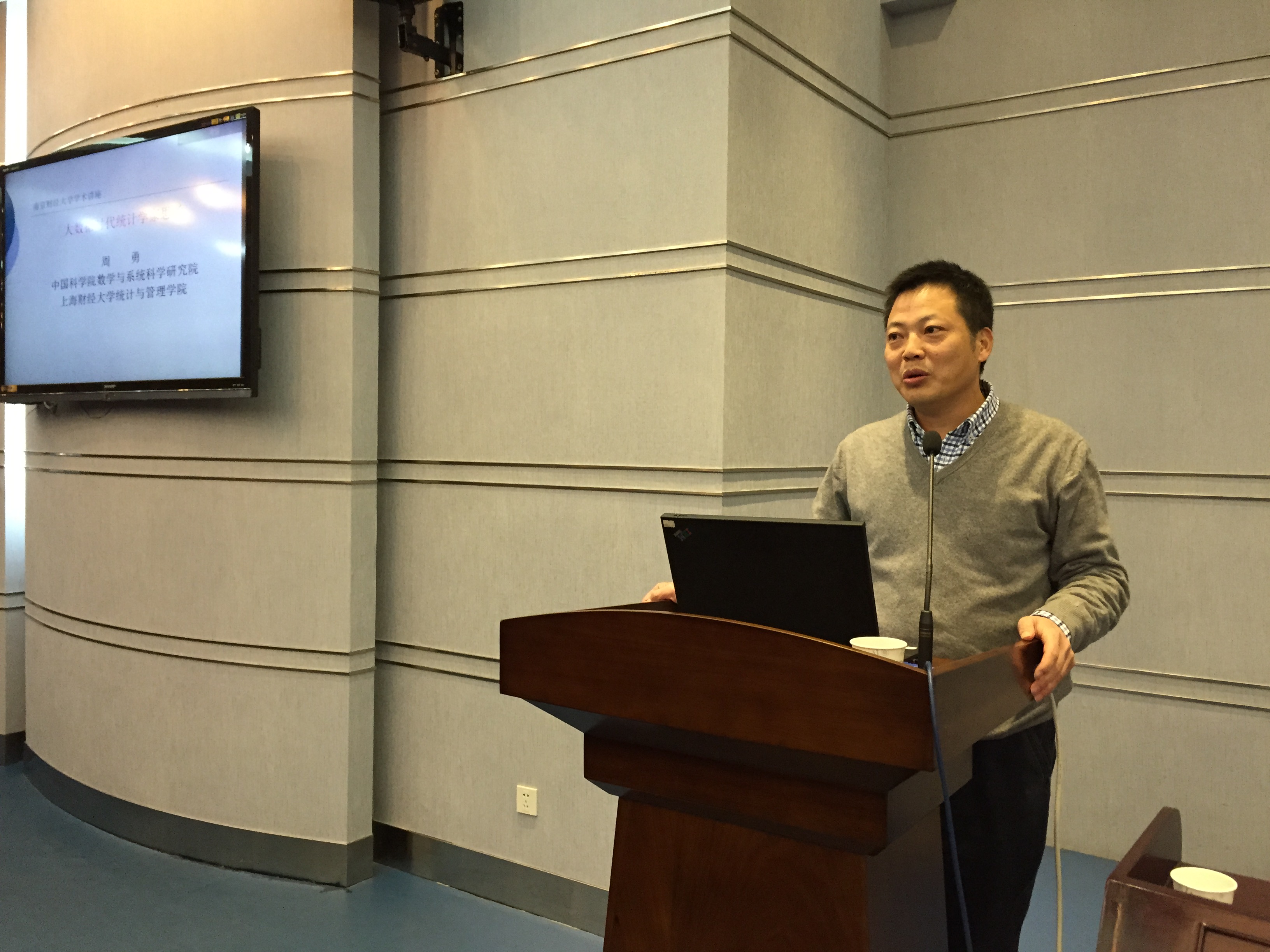 院长周勇教授应邀做客南财论坛,在仙林校区行政楼二楼报告厅为我校师生作了题为“大数据时代统计学家思考”的报告,副校长华仁海主持了报告会,并代表学校向周勇院长颁发了客座教授聘书,陈耀辉副院长(主持工作)、尹敬东副院长、叶林祥副院长出席了报告会。