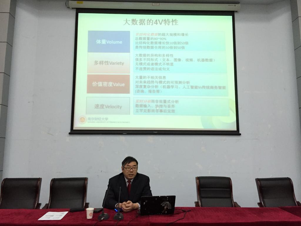 陈耀辉副院长以现阶段的热点话题——“大数据”为切入点,带领师生们在大数据世界旅行,在旅行中了解大数据。陈院长详细的介绍了什么是大数据,大数据到底和过去的数据分析技术有何联系和不同及大数据所具有的Volume、Variety、Value、Velocity“4V”特性,并从社交网络、电子商务、政府网络、医疗行业网络等方面生动形象地指出了大数据在世界生活中的广泛应用及大数据会对产业界、学术界、教育界造成巨大影响和变革。