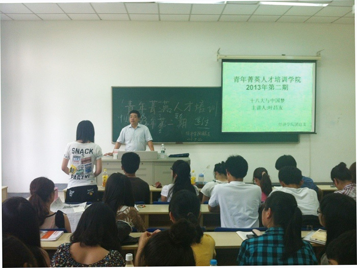 讲座一开始,叶老师首先介绍了中国梦提出的历史背景,它是在十八大的成功召开、党中央新的领导集体产生之后逐步提出的。习近平总书记在参观复兴之路展览后,发表有关中国梦的重要演讲,把中国梦的主题推向一个高潮。叶老师把中国梦和奥巴马的美国梦做了对比,指出一个国家需要有梦想才能更好的前进。接着,叶老师向同学们介绍了实现中国梦的多个途径,最后总结出走中国特色社会主义道路才能实现中国梦、富强梦。实现中国梦当然需要有让世界尊敬中国的中国精神,而沉淀几千年并与时俱进的民族精神和时代精神是我们中国精神的主要组成部分,叶老师鼓励我们青年把中国精神发扬光大。实现中国梦,要有中国力量,即各族人民团结的力量。最后,叶老师联系当代大学生,给同学们讲解了中国梦与“我”个人,尤其和大学生之间的联系,叶老师鼓励同学们要奋发图强,为中国梦的实现而读书,做新时代的高素质人才!讲座最后,同学们积极进行提问,叶老师根据同学们的问题依次从中国梦的发展历程、中国梦的本质内涵和时代特征等方面进行了详细解答,让大家对中国梦有了更深入了理解和体悟。