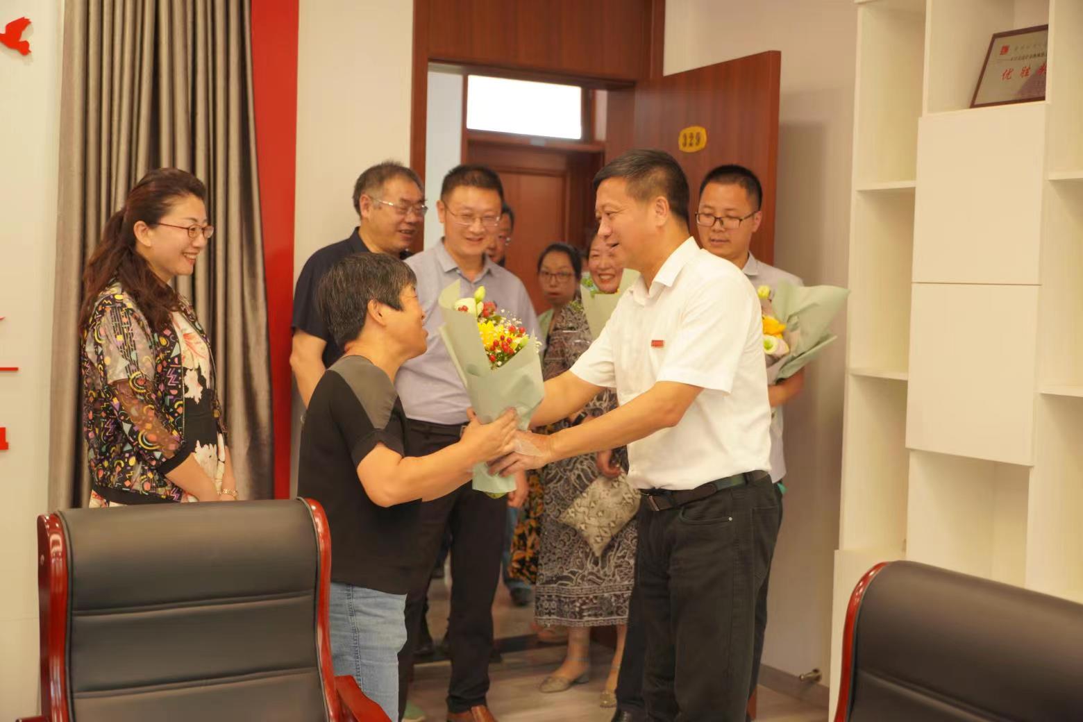 教师代表崔向阳、郭存芝、周宁、黄晓娟送上鲜花,对西瓜直播足球
