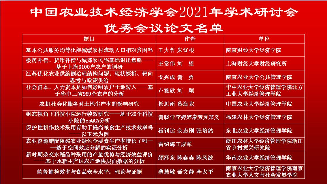 朱红根院长应邀作为点评专家参与了分论坛一“技术经济与农产品供给”的点评,并给出了宝贵的修改建议,使与会者收获颇丰。青年教师王大哲参加了分论坛二“乡村振兴与农业农村现代化”的学术讨论,汇报的论文《基本公共服务均等化能减缓农村流动人口相对贫困吗?》(王大哲、朱红根)获得优秀论文奖。浙江大学中国农村发展研究院院长钱文荣和中国人民大学农业与农村发展西瓜直播足球