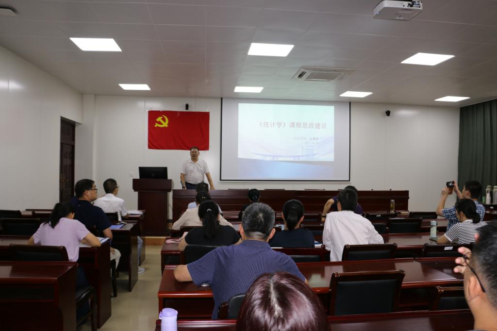 首先由院党委书记、校教学名师陈耀辉教授作题为“《统计学》课程思政建设”的主题报告。陈教授从课程思政建设的基本思路出发,阐述了课程思政主要解决的问题,课程思政的原则,课程思政建设对教师的要求,课程思政元素的五个维度等内容,最后介绍了自己关于课程思政建设的思考。陈教授指出,课程思政的根本目标是以立德树人为根本,以理想信念教育为核心,以社会主义核心价值观为引领,培养德智体美劳全面发展,堪当民族复兴大任的新时代拔尖人才。