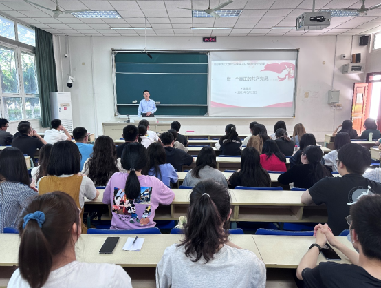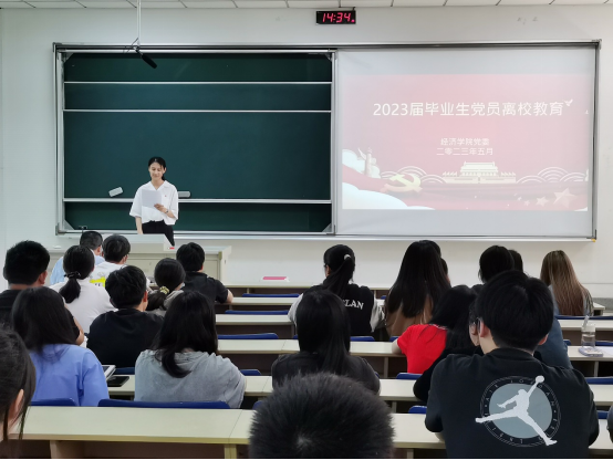 张圣兵书记为全体党员讲授“最后一堂党课”。党课以“立足新岗位、践行新使命、做一名真正的共产党员”为主题,寄语同学们:入党是责任、是形象、是名片。希望同学们离开南财也要不断学习、坚守信仰;要在工作岗位上建功立业,追求卓越;要坚持真善美,勇于与丑恶的事情做斗争。激励全体2023届毕业生党员,要在新的岗位上有“打铁自身硬”的底气、有“敢啃硬骨头”的勇气、有一颗坚守本职岗位的恒心、有时刻保持爱岗敬业的朝气,矢志不渝践行伟大建党精神,发挥党员先锋模范作用,担当时代使命。