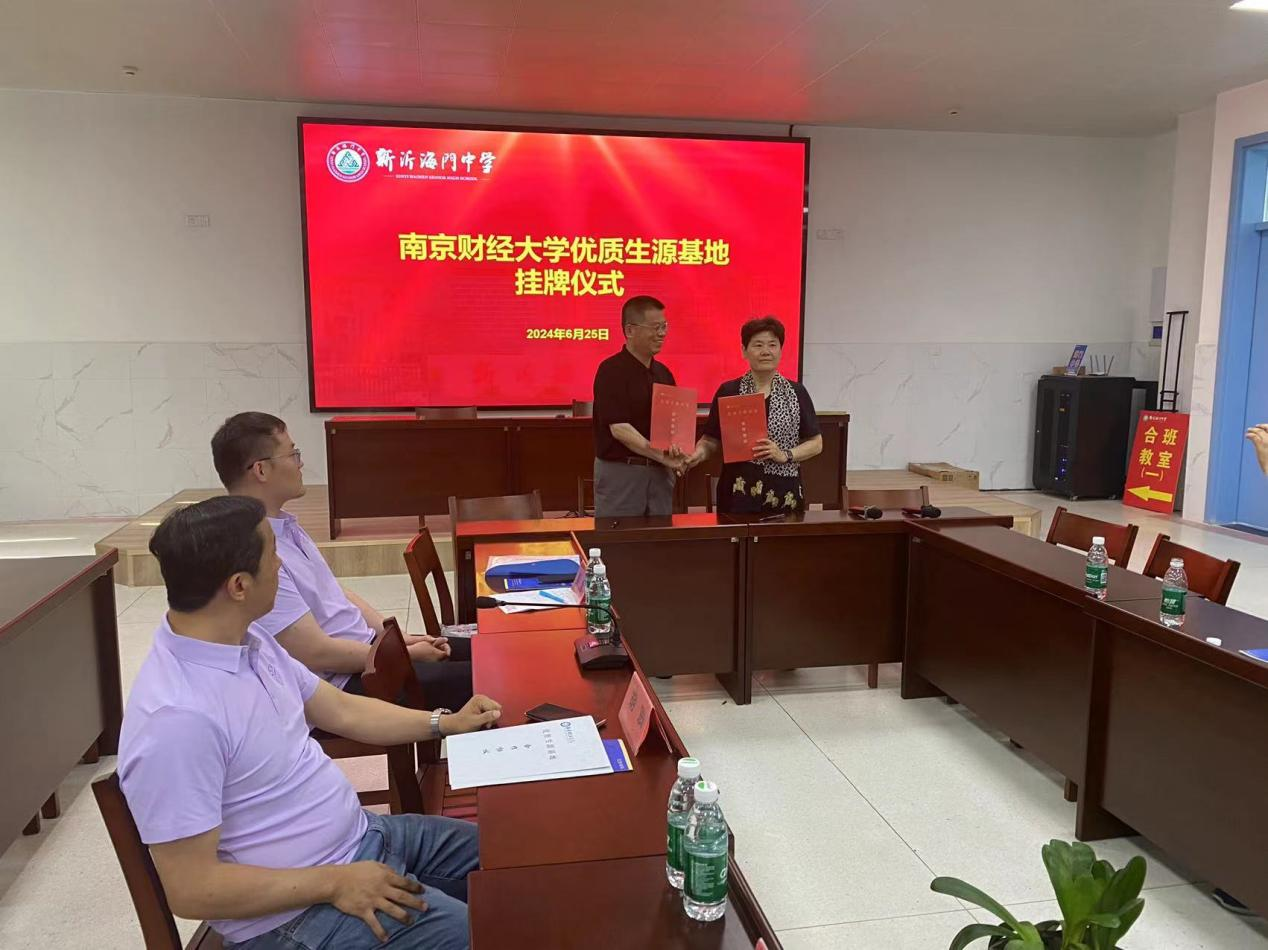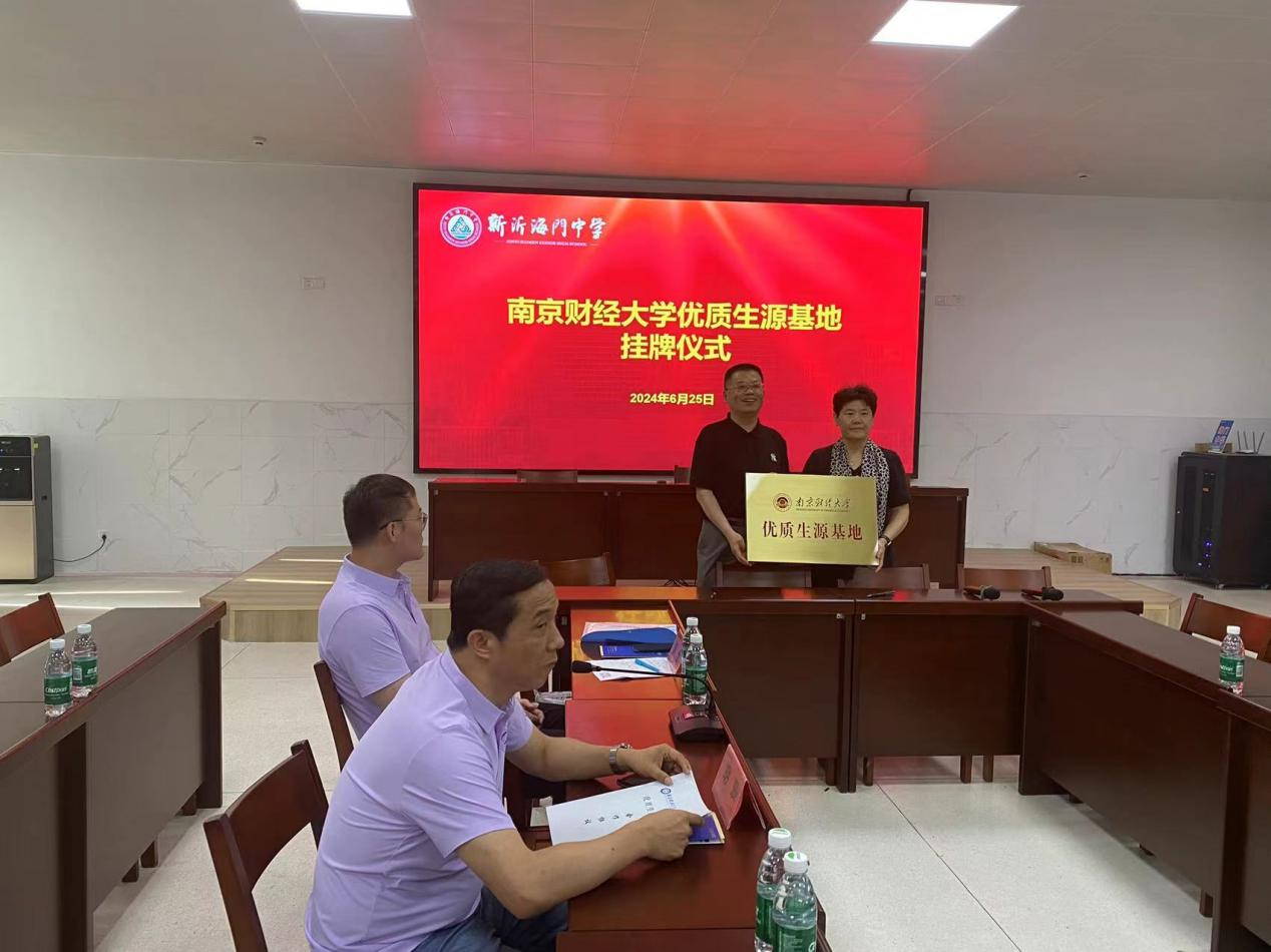 新沂海门中学校长王美华首先代表学校致辞,对我校一行的到来表示热烈的欢迎,并介绍了学校的办学历史和生源基本情况。王美华校长指出,南京财经大学作为首批授予学校“优质生源基地”荣誉牌的学校,充分体现了其对新沂海门中学的肯定与认可,感谢南京财经大学长期以来对新沂海门中学学子的厚爱与关心。希望双方在人才培养、招生宣传、实习实践等方面加强全方位、全覆盖的合作,将生源基地建设走深走实,合力培养德智体美劳全面发展的新时代好青年,共同推动中国教育事业发展。