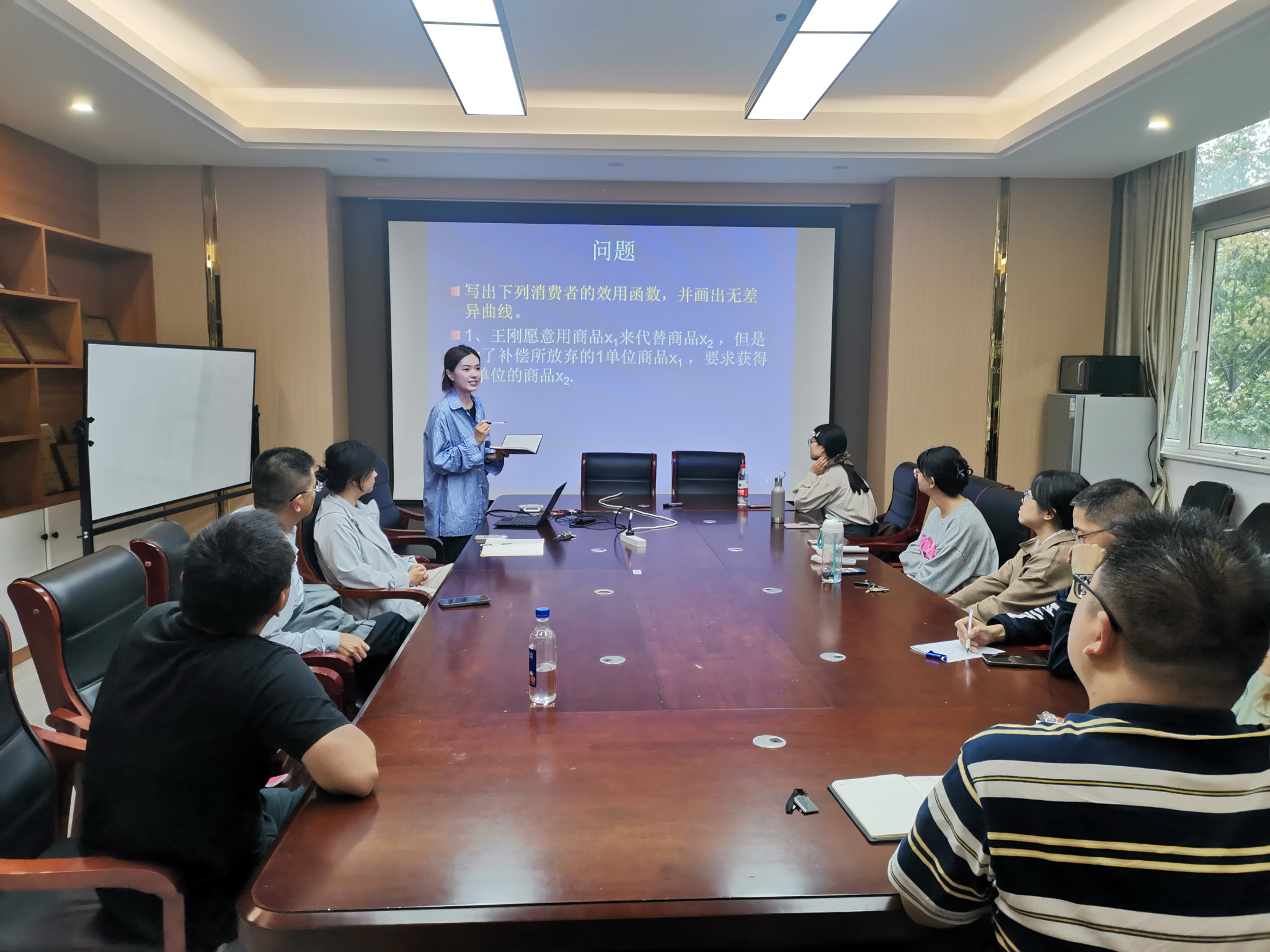 活动中,两位新进教师——牛慧老师和熊晓鸽老师,分别展示了他们的授课技巧与教学风采。牛慧老师围绕《经济模型与应用》课程中的“效用”概念,进行了深入浅出的讲解。她不仅详细介绍了多种效用表达式,还通过公式推导、图形解析以及结合实际案例的方式,生动呈现了理论知识,使复杂的经济学原理变得易于理解且具有趣味性。