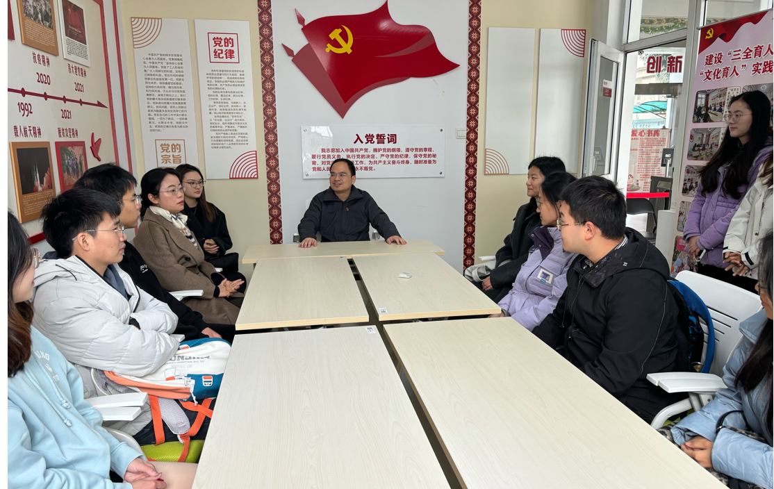 政治辅导员刘小峰院长在德经楼307会议室为研究生第一党支部讲授《发展新质生产力,促进高质量充分就业》的专题党课。研究生第一党支部书记周元春、学生党员参加学习。党课由研究生第一党支部书记周元春主持。