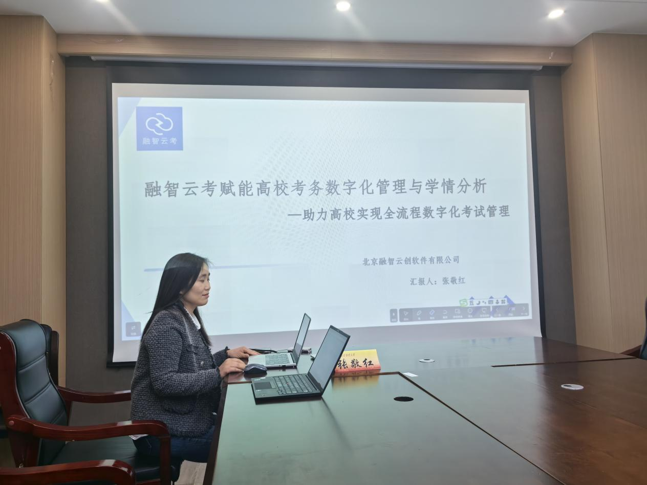 在德经楼323会议室举办了“名师名课示范观摩”交流会。本次会议以“一体化智能考务管理与学情评测分析系统在高校考务数字化工作中的应用及优势”为主题,特邀北京融智软件有限公司商务经理张敬红担任主讲嘉宾,西瓜直播足球