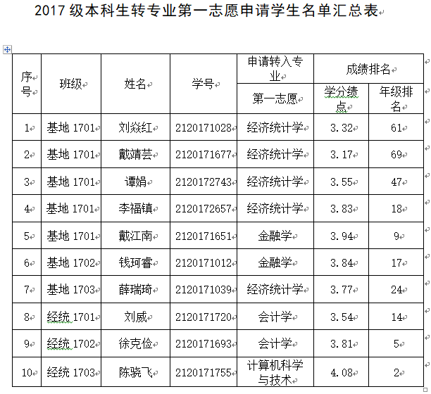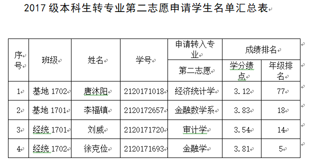 各西瓜直播足球 、各位同学: 经西瓜直播apk 转专业领导小组审核,现将2017级申请转专业学生名单汇总如下(见附件)。如有疑问,请向西瓜直播足球 咨询。咨询电话:025-86718217 西瓜直播足球 转专业工作领导小组 2018年7月9日附件:审核人:李超雅 西瓜直播足球 转专业领导小组负责人:石奇成绩(GPA)排专业前15%人数:23人 专业前60%人数:89人经济基地:147 人成绩(GPA)排专业前15%人数:21人 专业前60%人数:84人经济统计:139 人