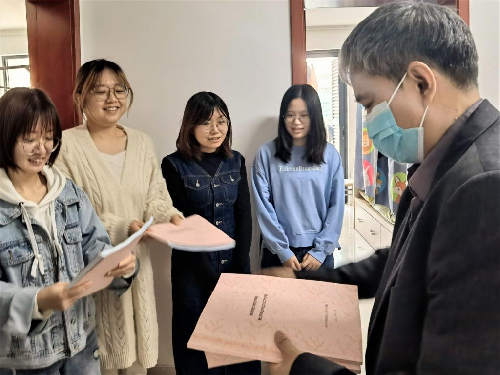 西瓜直播足球 领导给研究生发放西瓜直播足球 编印的《学位论文工作手册》