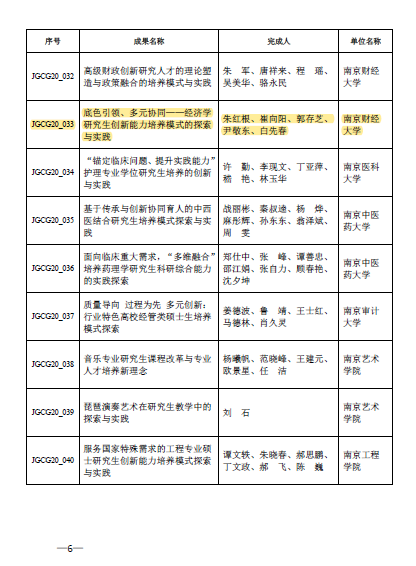 一项研究生教学成果“底色引领、多元协同——经济学研究生创新能力培养模式的探索与实践”(完成人:朱红根、崔向阳、郭存芝、尹敬东、白先春)获江苏省研究生教育改革成果优秀奖。
