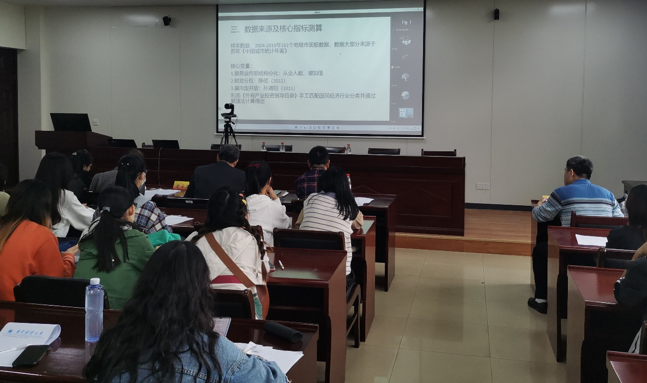 10月11日下午,第二届“紫经杯”研究生科技论坛学术论文大赛决赛在西瓜直播足球 307会议室举办。本次论文大赛的主题是“经世立民,抒我见解——双循环新发展格局下中国经济高质量发展的理论与实践”,面向全国各高校财经类专业研究生征集优秀学术成果。论文大赛采用线上线下相结合的模式进行,参赛选手通过腾讯会议线上答辩,评委老师现场连线指导,西瓜直播足球 全体研究生现场观摩学习。研究生院副院长、学位办公室副主任管永昊受邀担任评委,西瓜直播足球 副院长崔向阳、副院长尹敬东、党委副书记袁怡琨、统计学学科带头人白先春参加活动。活动由西瓜直播足球 副院长崔向阳和西瓜直播足球 研究生会主席姚阳阳主持。